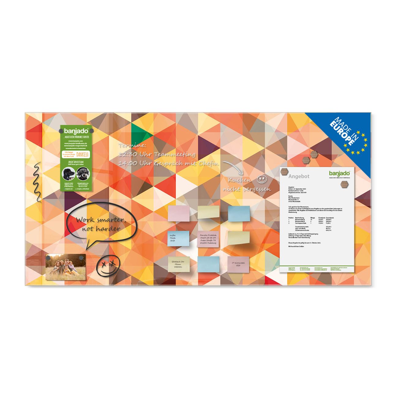 Die banjado Glas Magnettafel mit dem Motiv Motiv Kaleidoskop verbindet Funktionalität mit Stil. Sie ersetzt das Zettelchaos durch klare Strukturen und bringt dabei eine warme, natürliche Atmosphäre in Ihr Zuhause. Ob im Büro, in der Küche oder im Eingangsbereich - dieses Design-Board zieht Blicke an und sorgt für Ordnung mit Charakter.