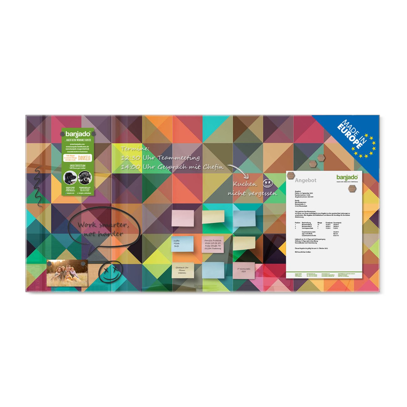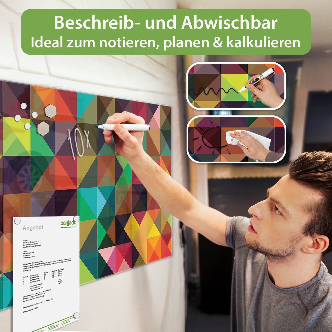 Die banjado Glas Magnettafel mit dem Motiv Motiv Dunkles Kaleidoskop verbindet Funktionalität mit Stil. Sie ersetzt das Zettelchaos durch klare Strukturen und bringt dabei eine warme, natürliche Atmosphäre in Ihr Zuhause. Ob im Büro, in der Küche oder im Eingangsbereich - dieses Design-Board zieht Blicke an und sorgt für Ordnung mit Charakter.