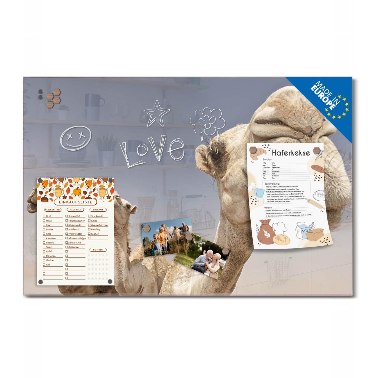Ein Stück Design, das Ihren Alltag organisiert. Schreiben, heften, inspirieren - alles an einem Ort. Qualität, die man spürt. Montage leicht gemacht. Handwerk mit Herz - veredelt in Sachsen. Einzigartiges Design mit Motiv Motiv Kamele Beschreibbare Glasoberfläche, leicht zu reinigen Starke Magnetkraft durch Stahlrückwand Inklusive 4 Neodym-Magneten Flexible Montageoptionen Handveredelt in Sachsen - Qualität, die bleibt