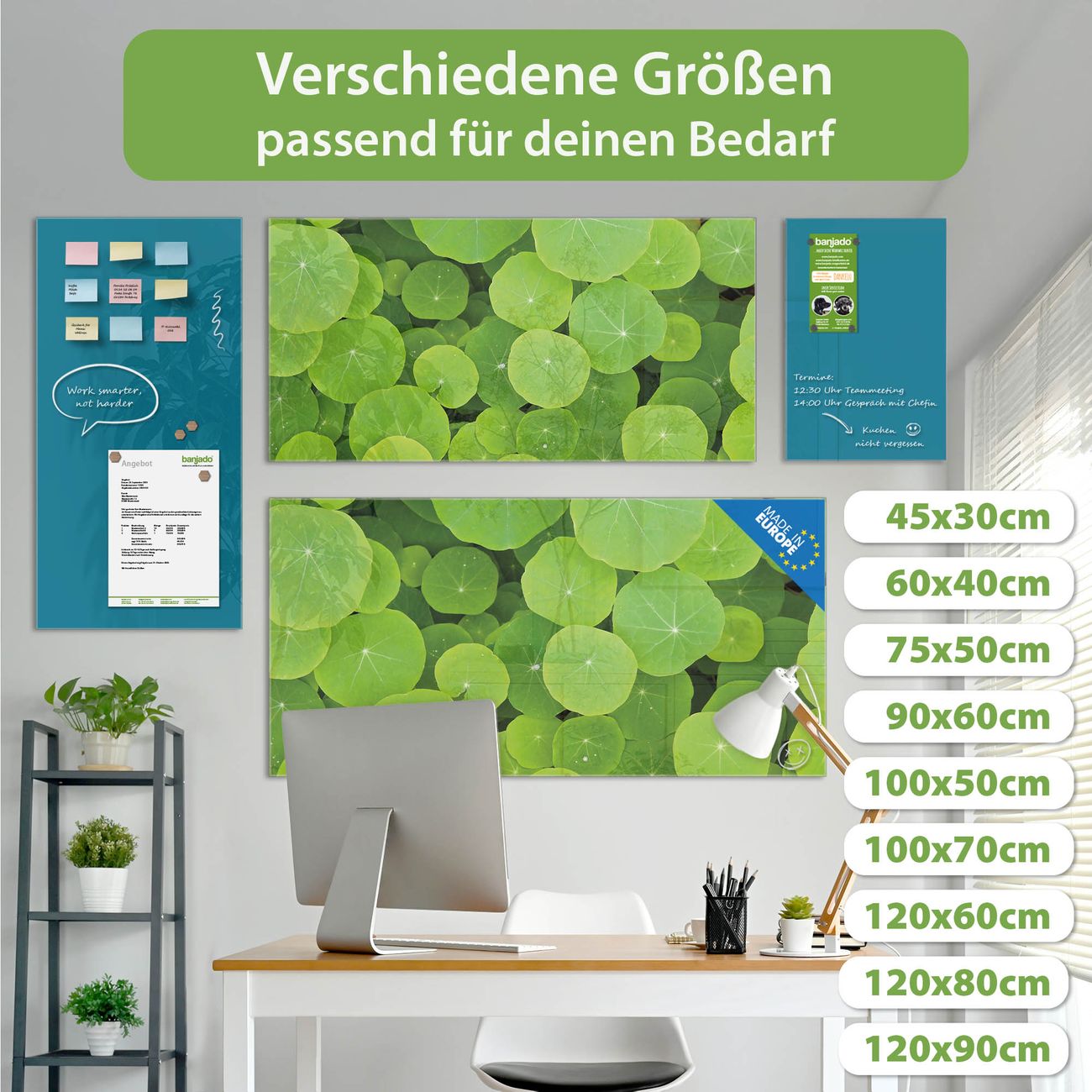 Die banjado Glas Magnettafel mit dem Motiv Motiv Kapuzinerkresse verbindet Funktionalität mit Stil. Sie ersetzt das Zettelchaos durch klare Strukturen und bringt dabei eine warme, natürliche Atmosphäre in Ihr Zuhause. Ob im Büro, in der Küche oder im Eingangsbereich - dieses Design-Board zieht Blicke an und sorgt für Ordnung mit Charakter.