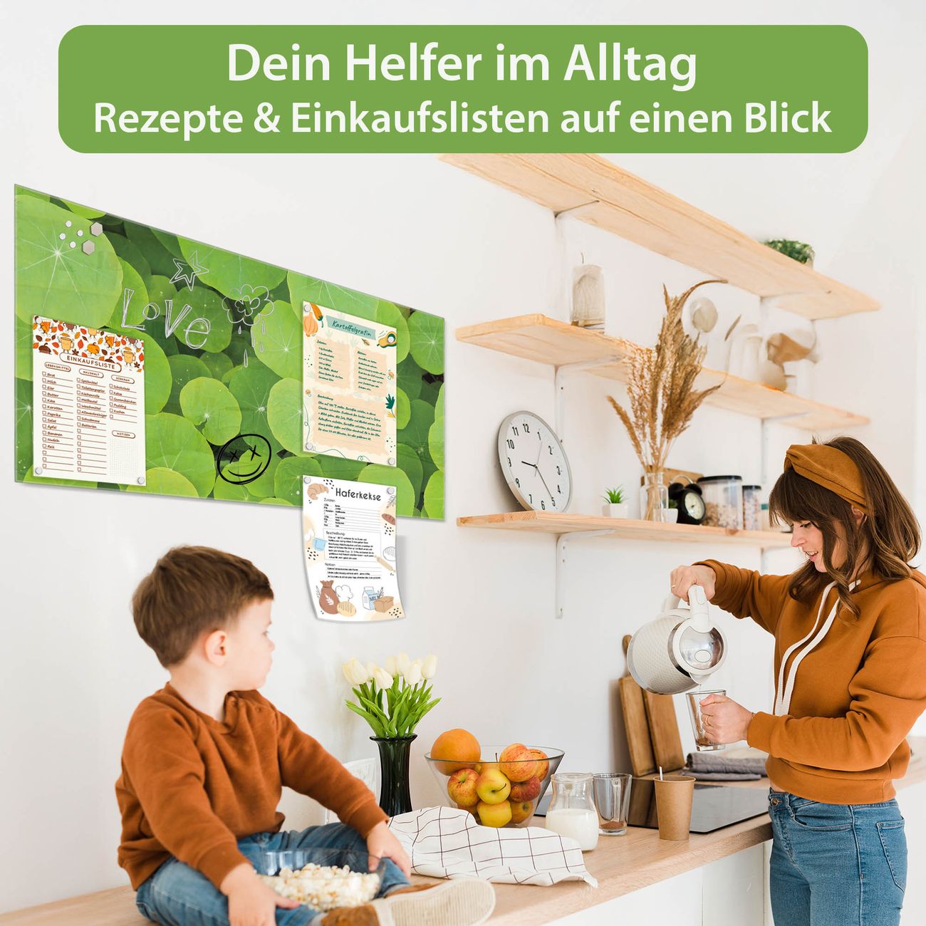 Ein Stück Design, das Ihren Alltag organisiert. Schreiben, heften, inspirieren - alles an einem Ort. Qualität, die man spürt. Montage leicht gemacht. Handwerk mit Herz - veredelt in Sachsen. Einzigartiges Design mit Motiv Motiv Kapuzinerkresse Beschreibbare Glasoberfläche, leicht zu reinigen Starke Magnetkraft durch Stahlrückwand Inklusive 4 Neodym-Magneten Flexible Montageoptionen Handveredelt in Sachsen - Qualität, die bleibt