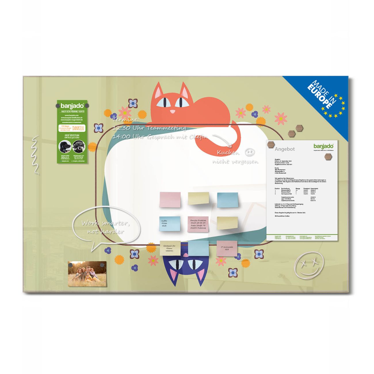 Glas Magnettafel im Querformat Motiv Karikatur Katzen
