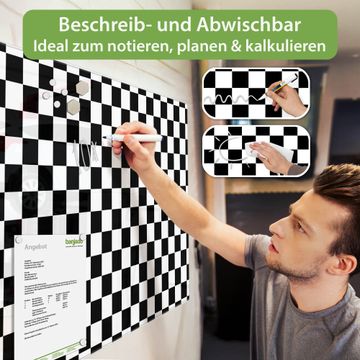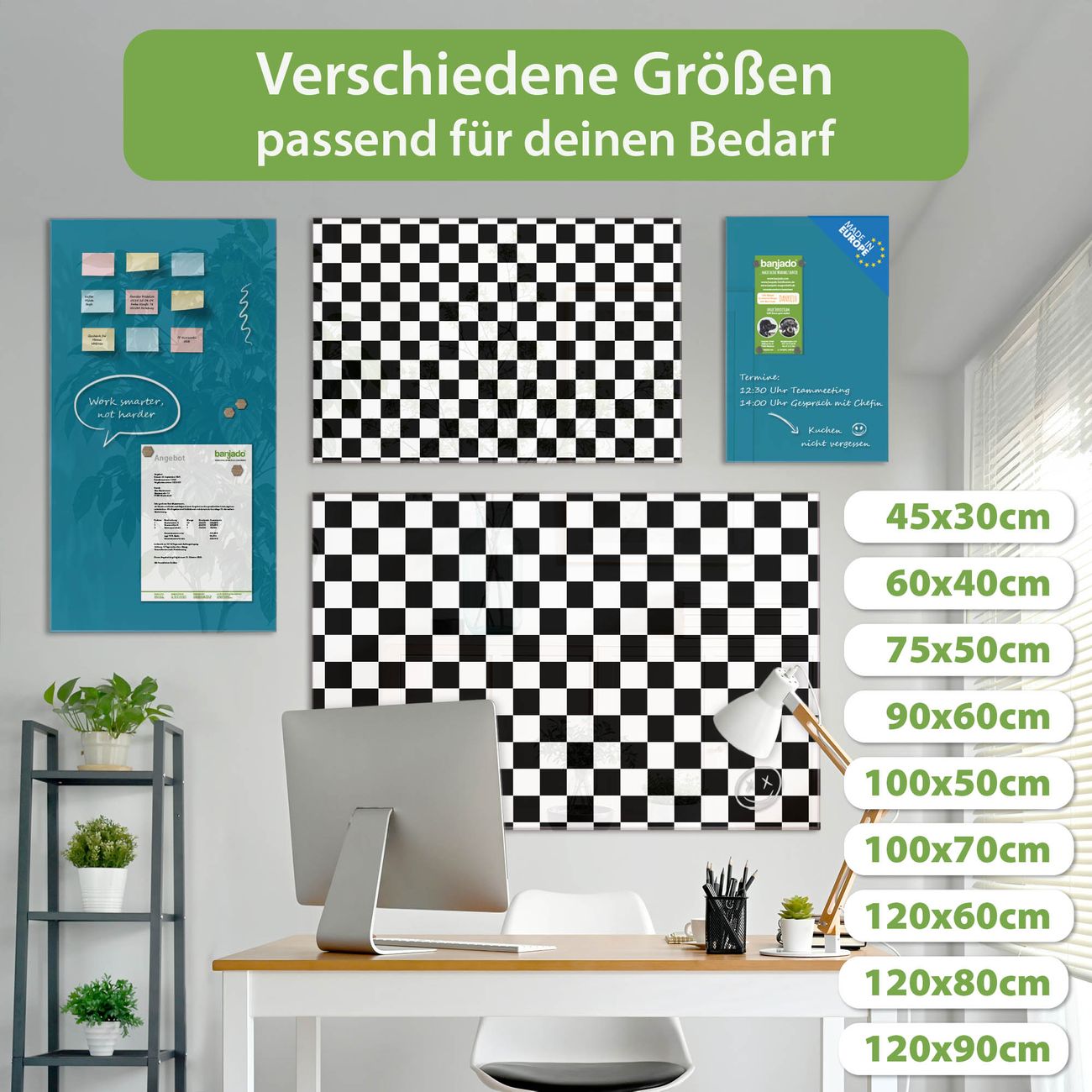 Glas Magnettafel im Querformat Motiv Karo Schwarz