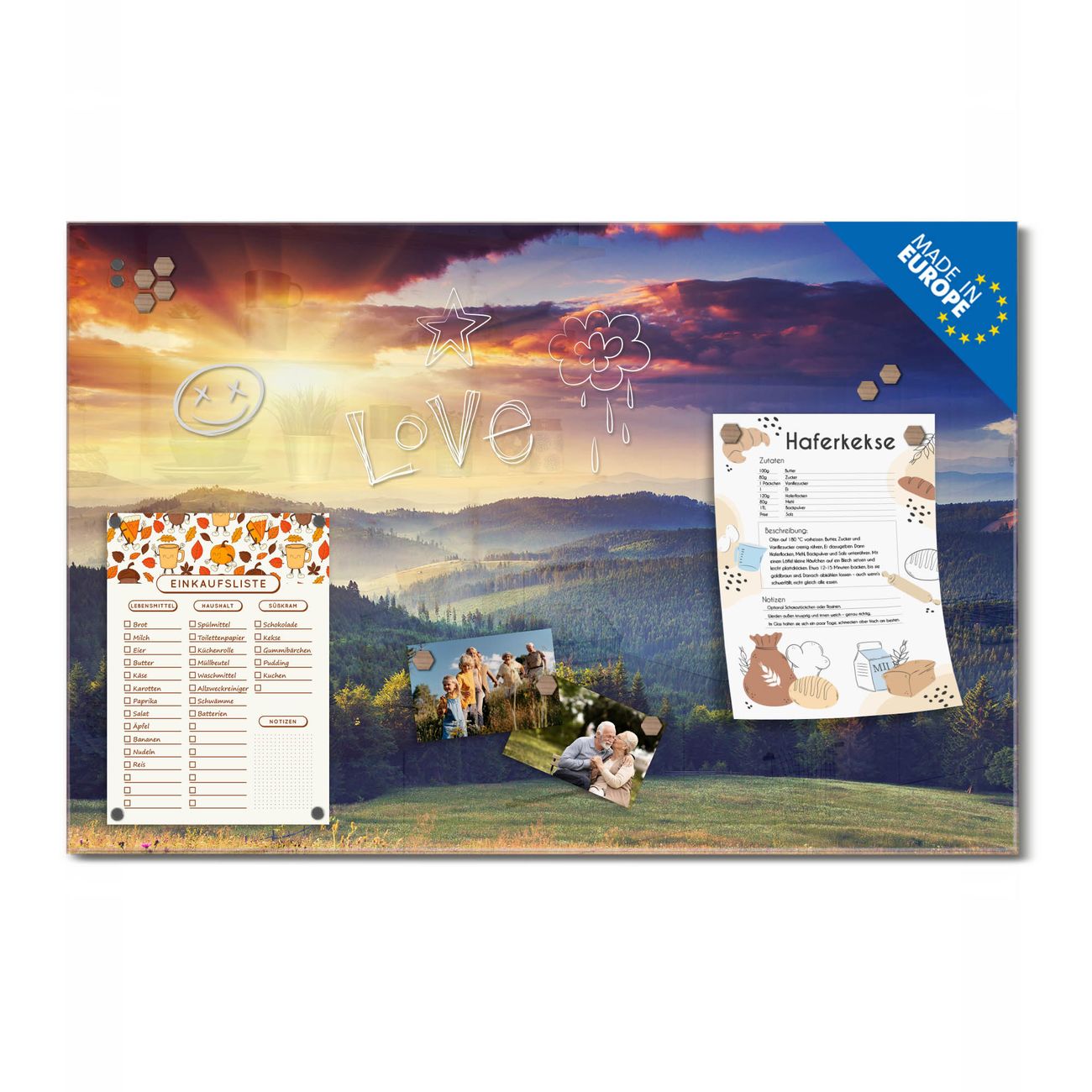 Ein Stück Design, das Ihren Alltag organisiert. Schreiben, heften, inspirieren - alles an einem Ort. Qualität, die man spürt. Montage leicht gemacht. Handwerk mit Herz - veredelt in Sachsen. Einzigartiges Design mit Motiv Motiv Karpaten Sonnenuntergang Beschreibbare Glasoberfläche, leicht zu reinigen Starke Magnetkraft durch Stahlrückwand Inklusive 4 Neodym-Magneten Flexible Montageoptionen Handveredelt in Sachsen - Qualität, die bleibt