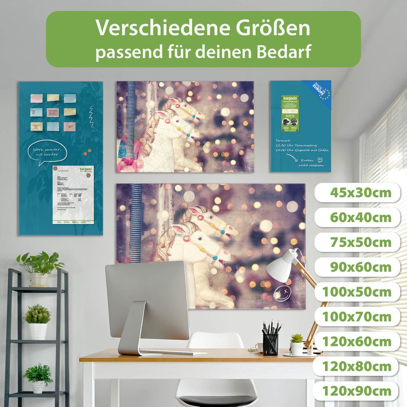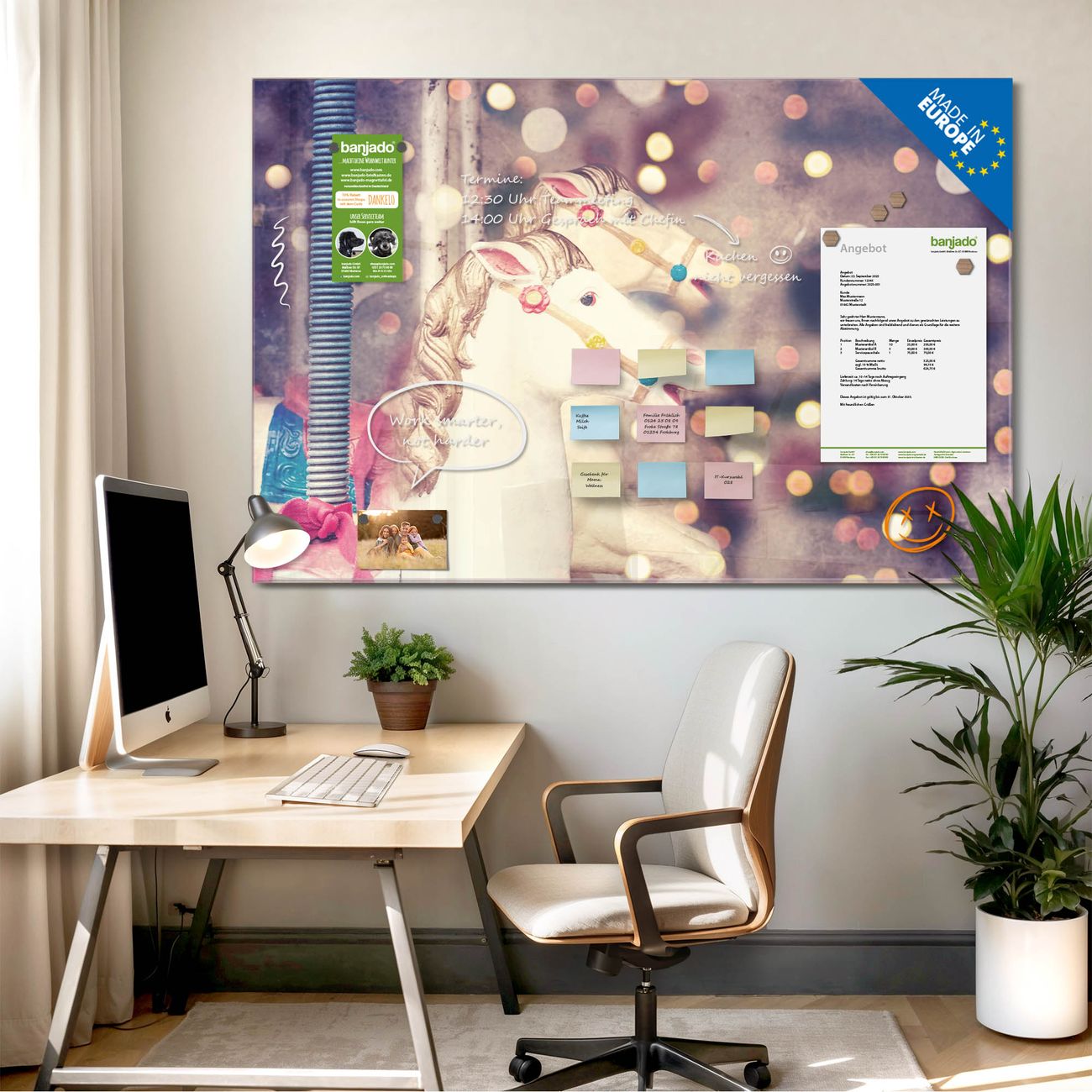 Jede Glas Magnettafel wird in unserer Werkstatt von Hand gefertigt und sorgfältig geprüft. So erhalten Sie ein echtes Qualitätsprodukt, das Funktion und Ästhetik perfekt vereint.?? Warum banjado?