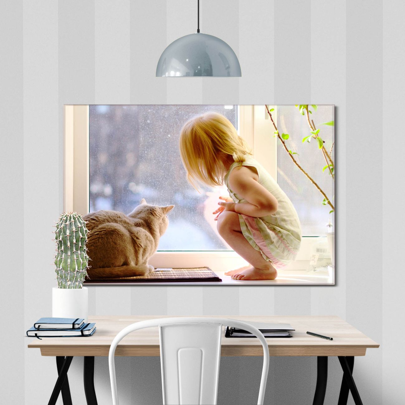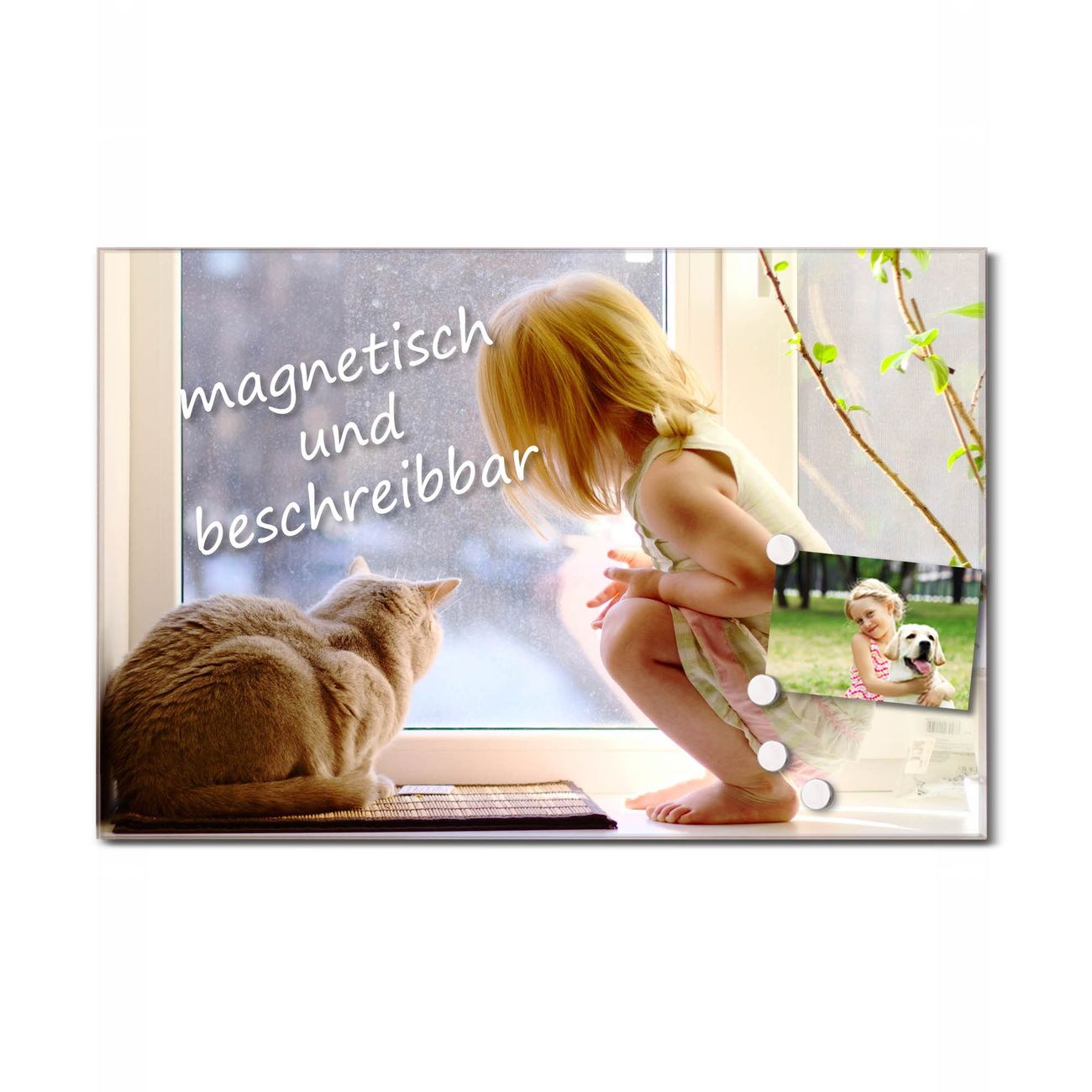 Glas Magnettafel im Querformat Katze Und Mädchen