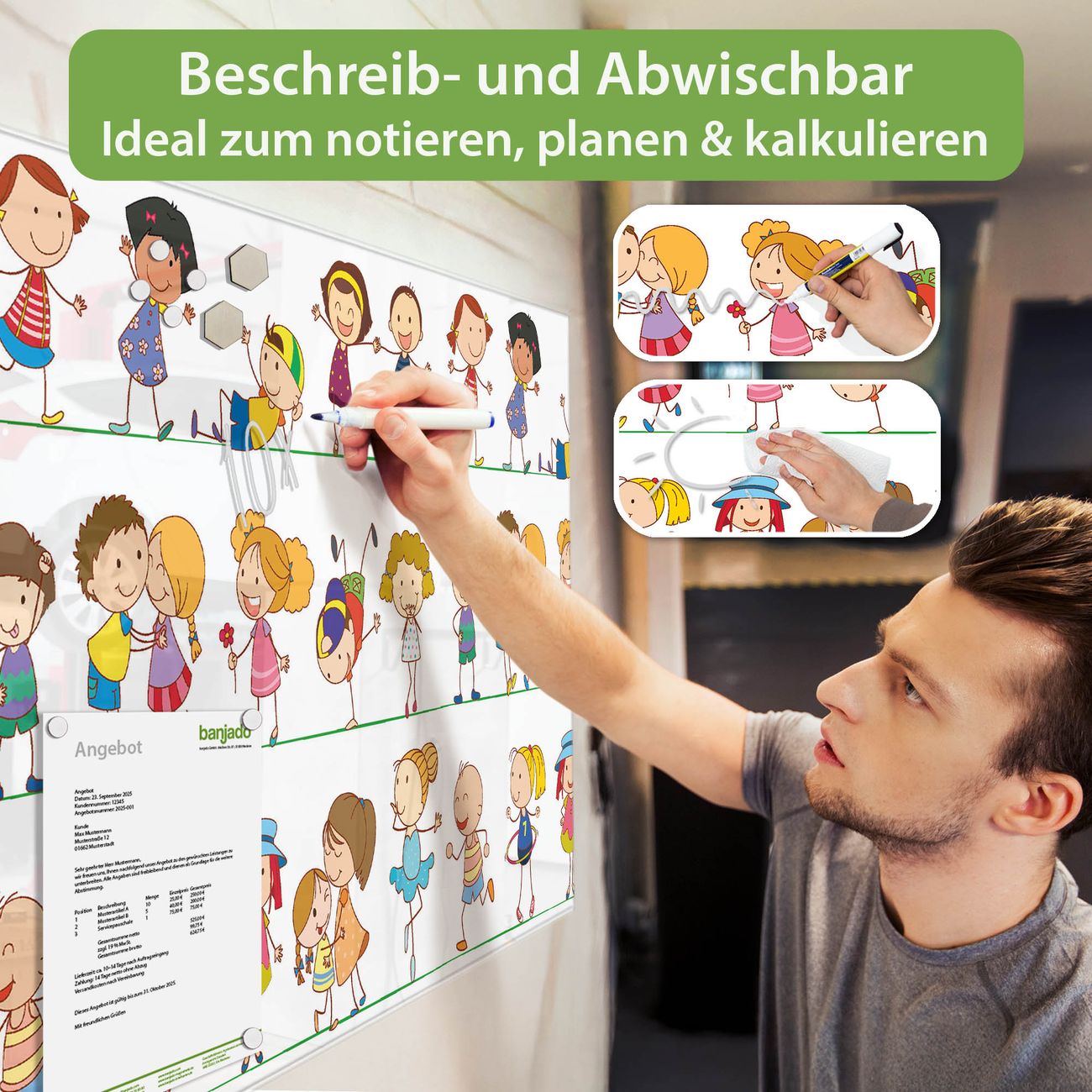 Die banjado Glas Magnettafel mit dem Motiv Motiv Kinder verbindet Funktionalität mit Stil. Sie ersetzt das Zettelchaos durch klare Strukturen und bringt dabei eine warme, natürliche Atmosphäre in Ihr Zuhause. Ob im Büro, in der Küche oder im Eingangsbereich - dieses Design-Board zieht Blicke an und sorgt für Ordnung mit Charakter.