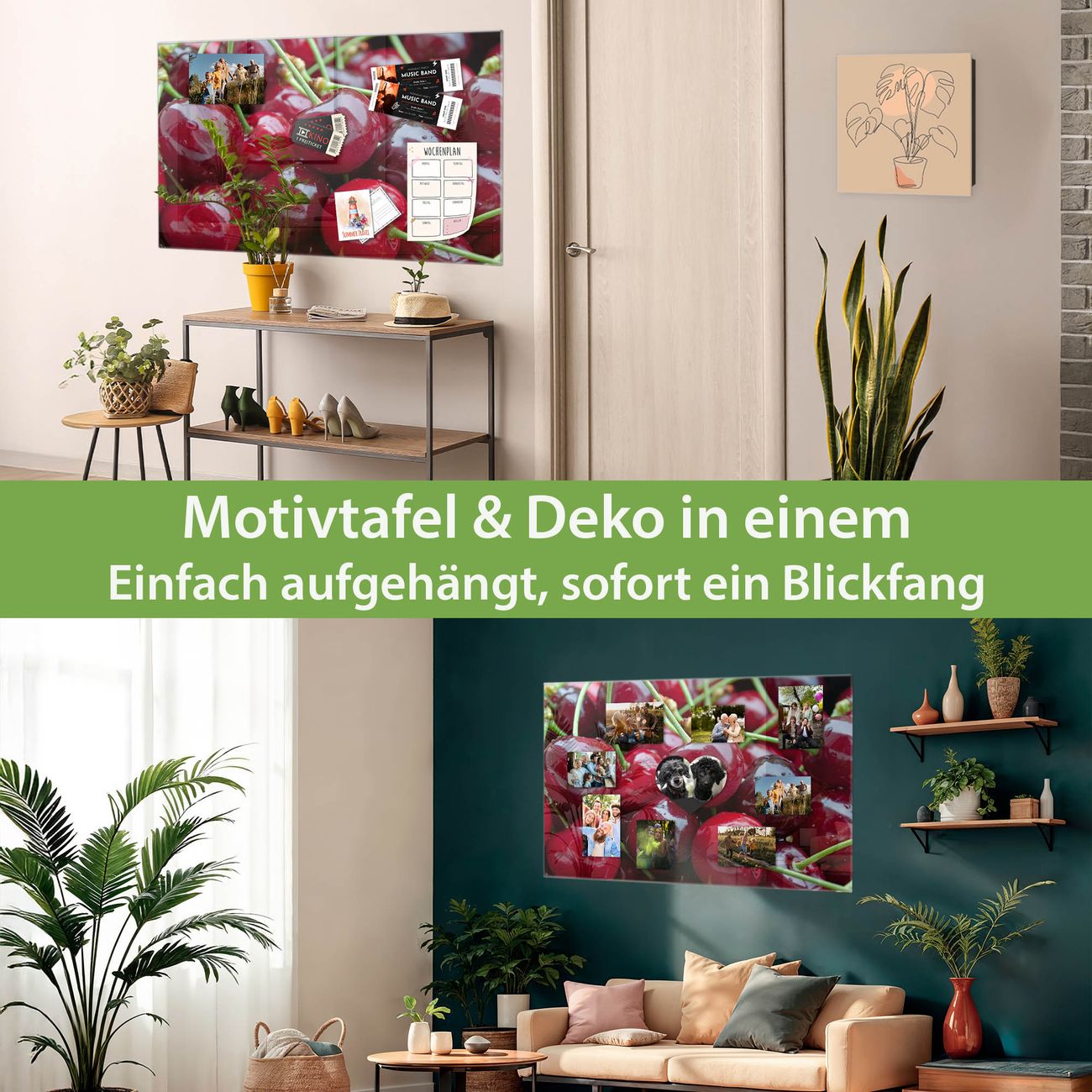 Die banjado Glas Magnettafel mit dem Motiv Motiv Kirschen verbindet Funktionalität mit Stil. Sie ersetzt das Zettelchaos durch klare Strukturen und bringt dabei eine warme, natürliche Atmosphäre in Ihr Zuhause. Ob im Büro, in der Küche oder im Eingangsbereich - dieses Design-Board zieht Blicke an und sorgt für Ordnung mit Charakter.