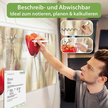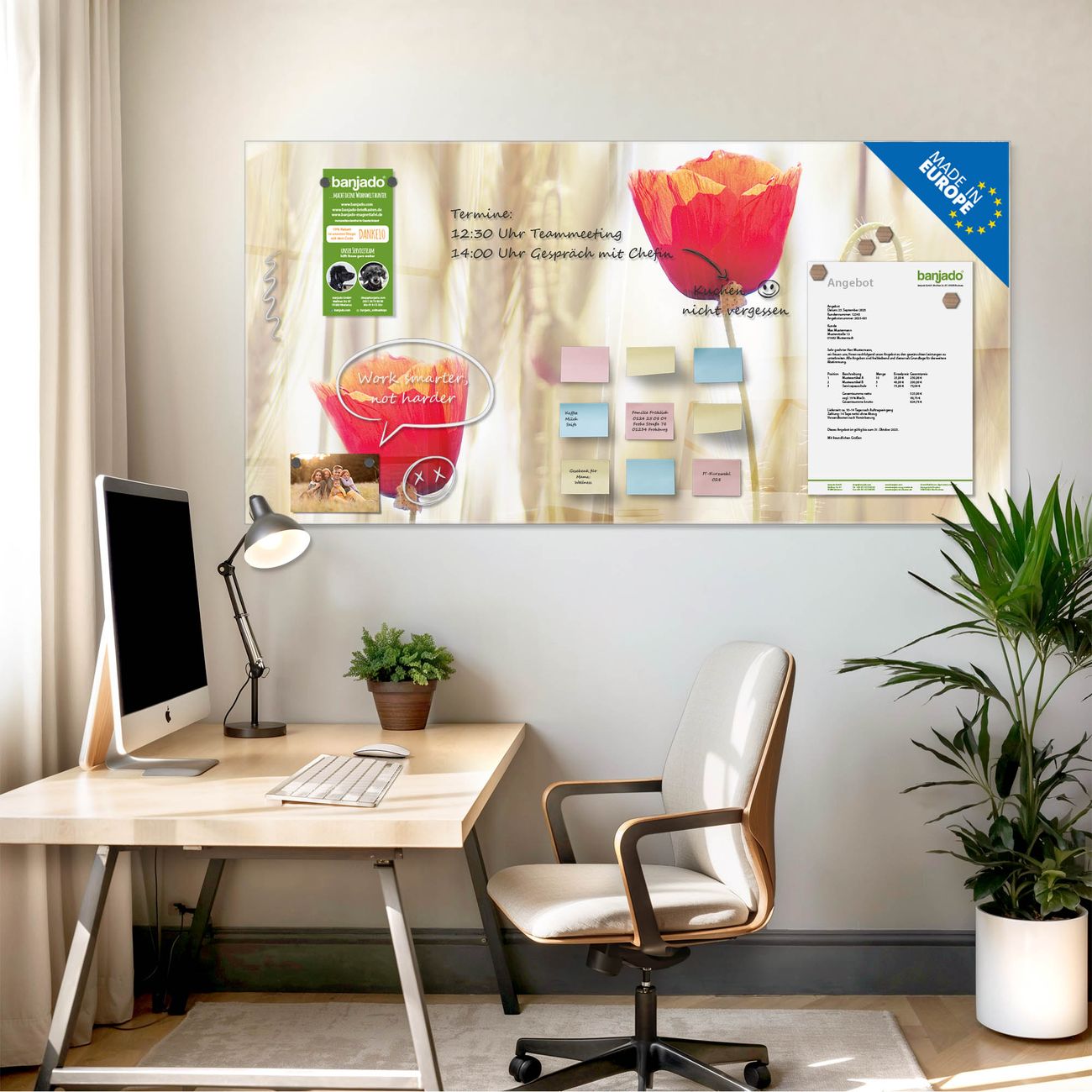 Die banjado Glas Magnettafel mit dem Motiv Motiv Klatschmohn verbindet Funktionalität mit Stil. Sie ersetzt das Zettelchaos durch klare Strukturen und bringt dabei eine warme, natürliche Atmosphäre in Ihr Zuhause. Ob im Büro, in der Küche oder im Eingangsbereich - dieses Design-Board zieht Blicke an und sorgt für Ordnung mit Charakter.
