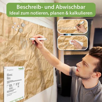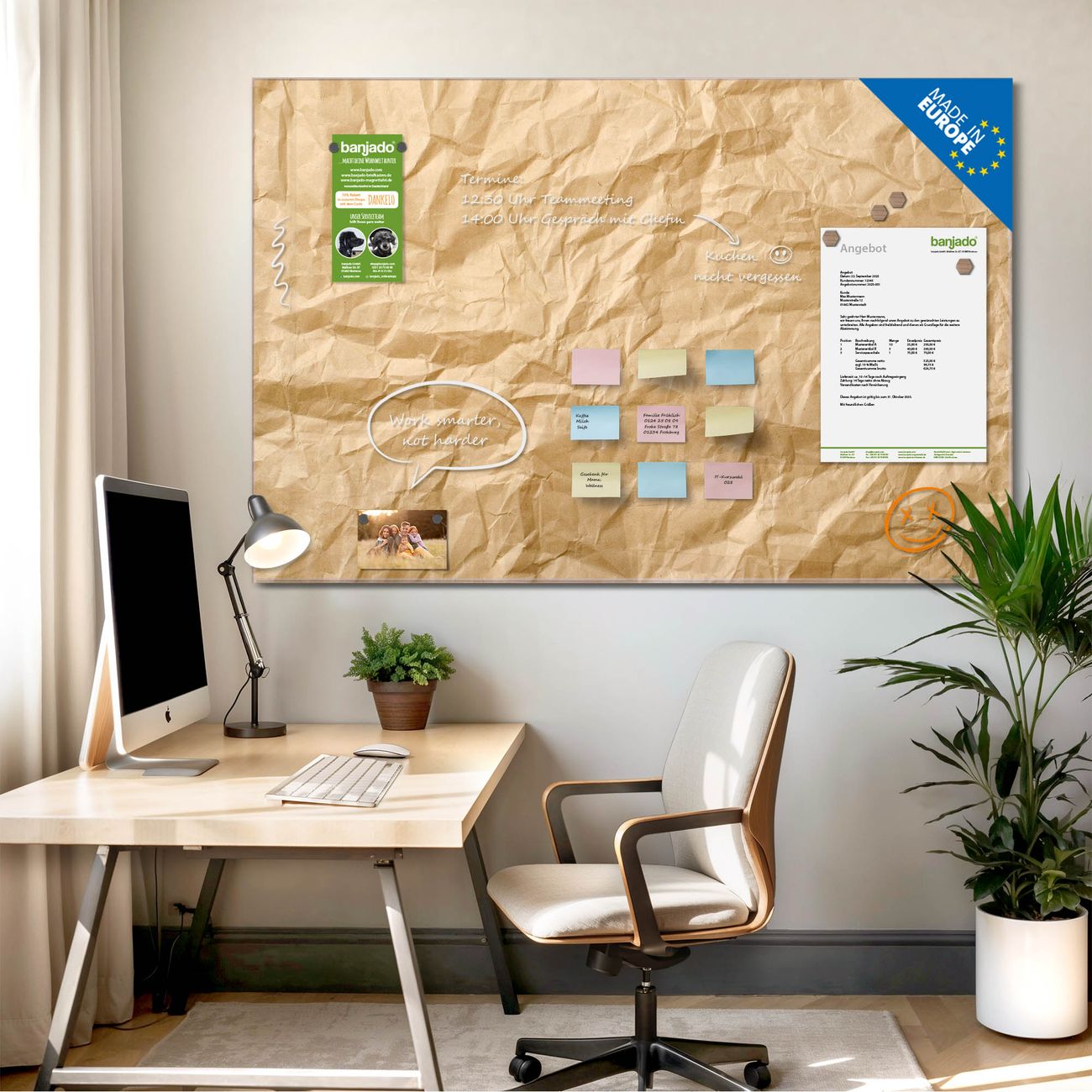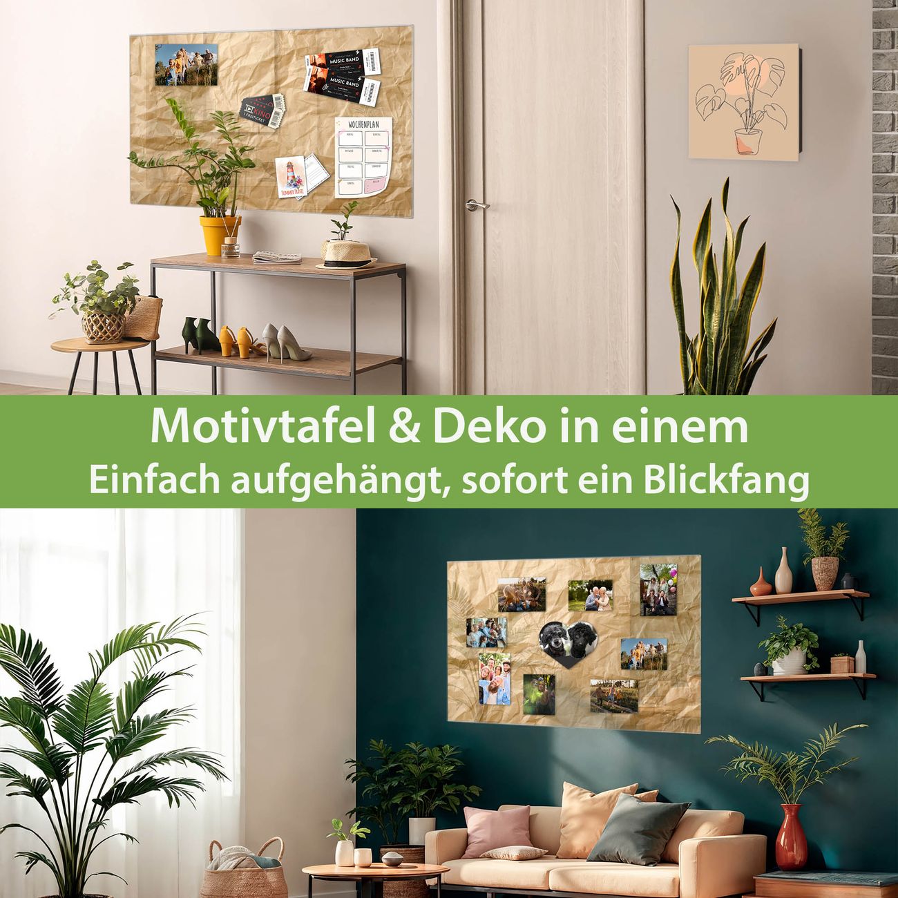 Die banjado Glas Magnettafel mit dem Motiv Motiv Knüllpapier verbindet Funktionalität mit Stil. Sie ersetzt das Zettelchaos durch klare Strukturen und bringt dabei eine warme, natürliche Atmosphäre in Ihr Zuhause. Ob im Büro, in der Küche oder im Eingangsbereich - dieses Design-Board zieht Blicke an und sorgt für Ordnung mit Charakter.