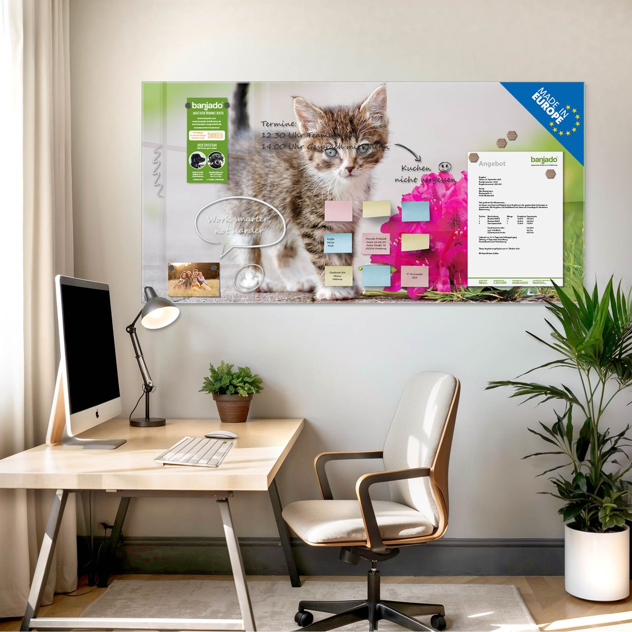 Jede Glas Magnettafel wird in unserer Werkstatt von Hand gefertigt und sorgfältig geprüft. So erhalten Sie ein echtes Qualitätsprodukt, das Funktion und Ästhetik perfekt vereint.?? Warum banjado?