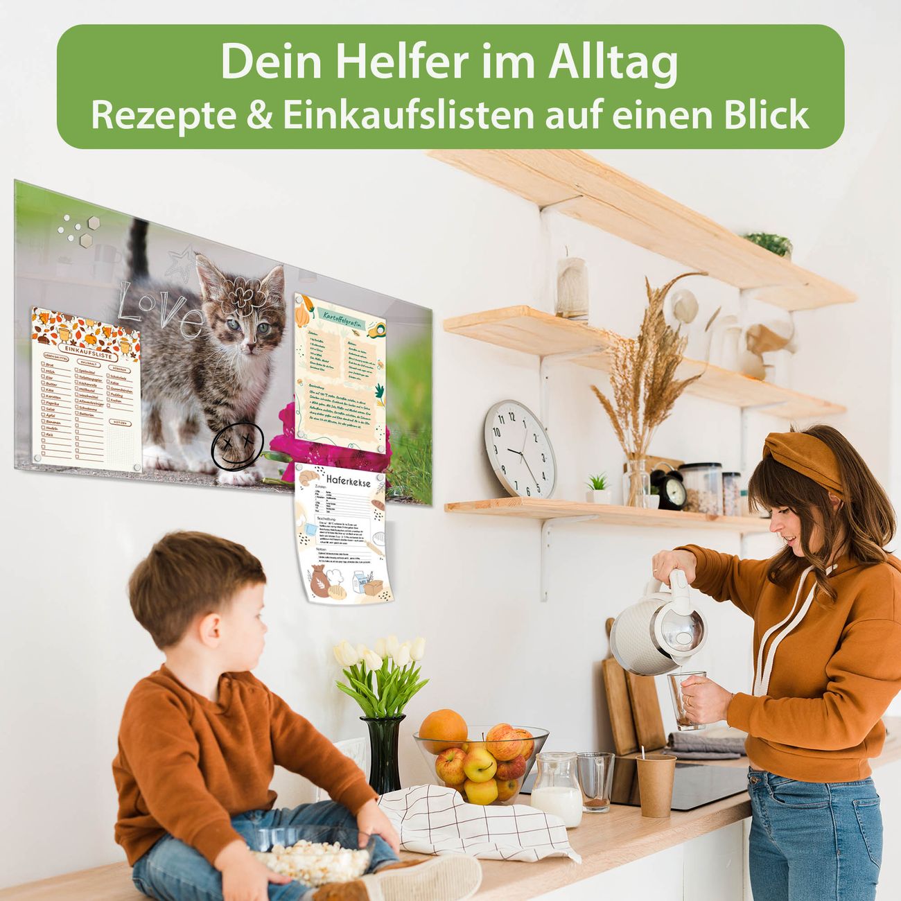 Auf der glatten Glasoberfläche lassen sich Termine, Rezepte oder Notizen ganz einfach mit Kreidestiften festhalten und rückstandslos entfernen. Starke Neodym-Magnete halten Ihre wichtigsten Erinnerungen sicher an Ort und Stelle. So entsteht Ihre ganz persönliche Ideenwand - jeden Tag neu.