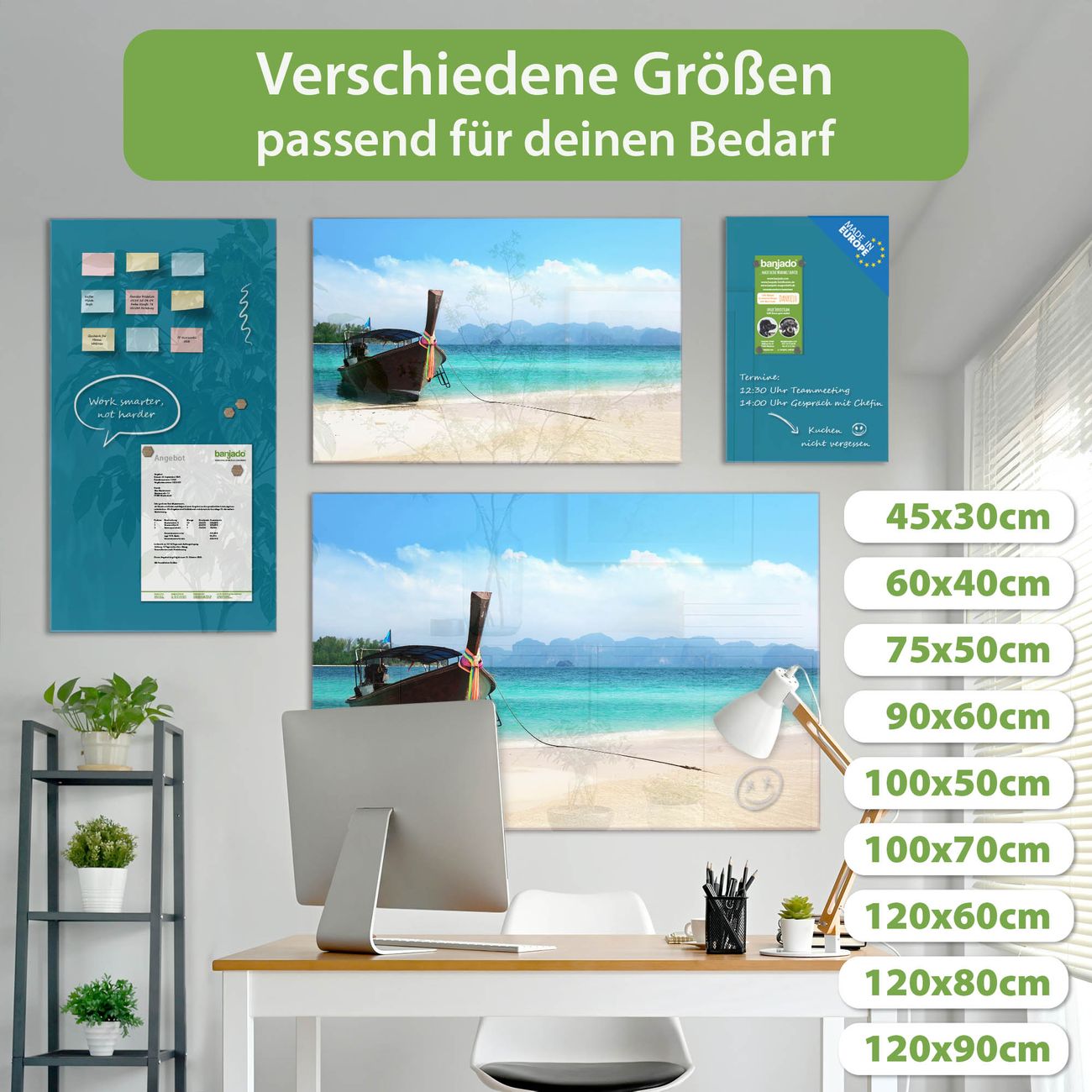 Jede Glas Magnettafel wird in unserer Werkstatt von Hand gefertigt und sorgfältig geprüft. So erhalten Sie ein echtes Qualitätsprodukt, das Funktion und Ästhetik perfekt vereint.?? Warum banjado?