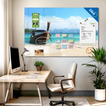 Die banjado Glas Magnettafel mit dem Motiv Motiv Koh Poda verbindet Funktionalität mit Stil. Sie ersetzt das Zettelchaos durch klare Strukturen und bringt dabei eine warme, natürliche Atmosphäre in Ihr Zuhause. Ob im Büro, in der Küche oder im Eingangsbereich - dieses Design-Board zieht Blicke an und sorgt für Ordnung mit Charakter.