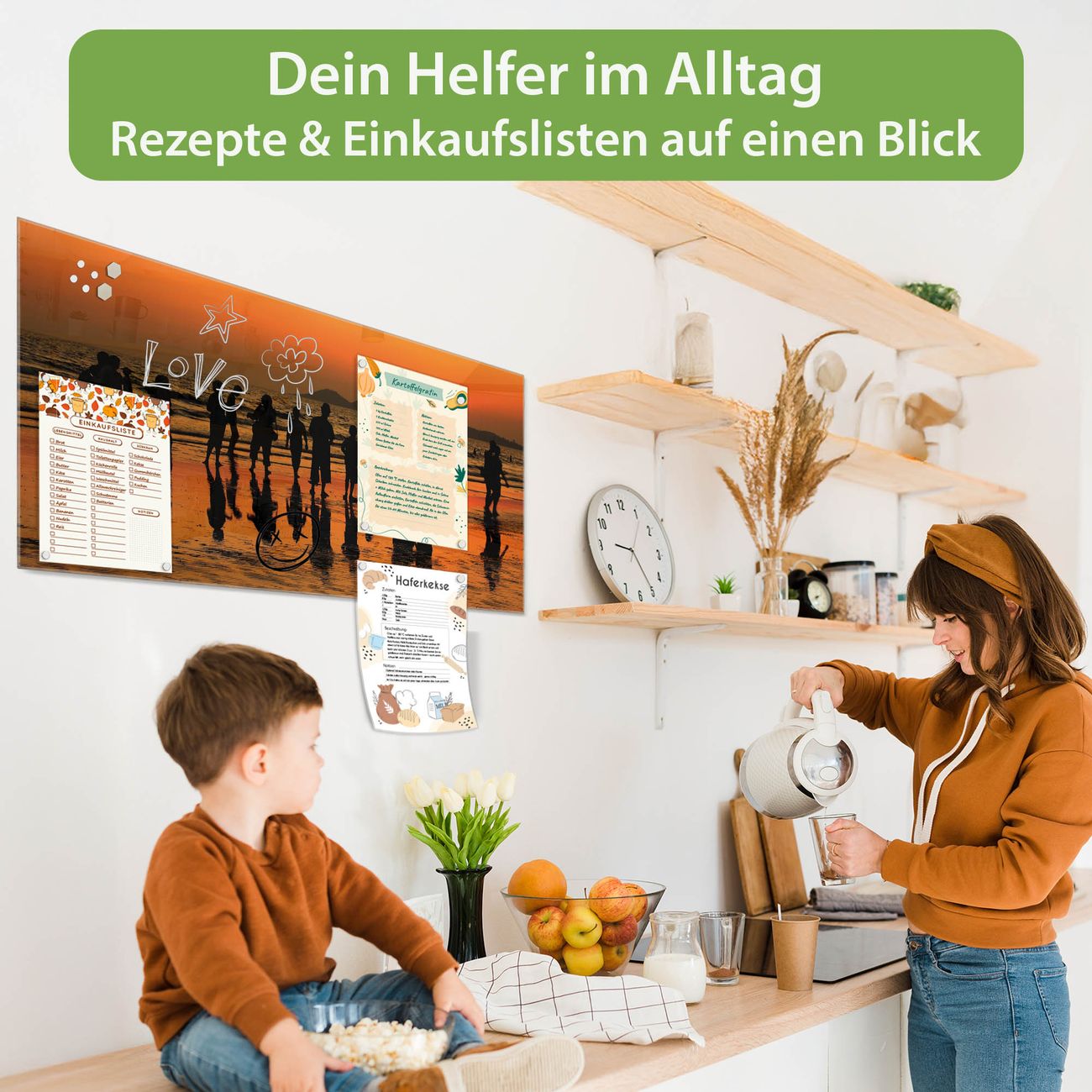 Auf der glatten Glasoberfläche lassen sich Termine, Rezepte oder Notizen ganz einfach mit Kreidestiften festhalten und rückstandslos entfernen. Starke Neodym-Magnete halten Ihre wichtigsten Erinnerungen sicher an Ort und Stelle. So entsteht Ihre ganz persönliche Ideenwand - jeden Tag neu.