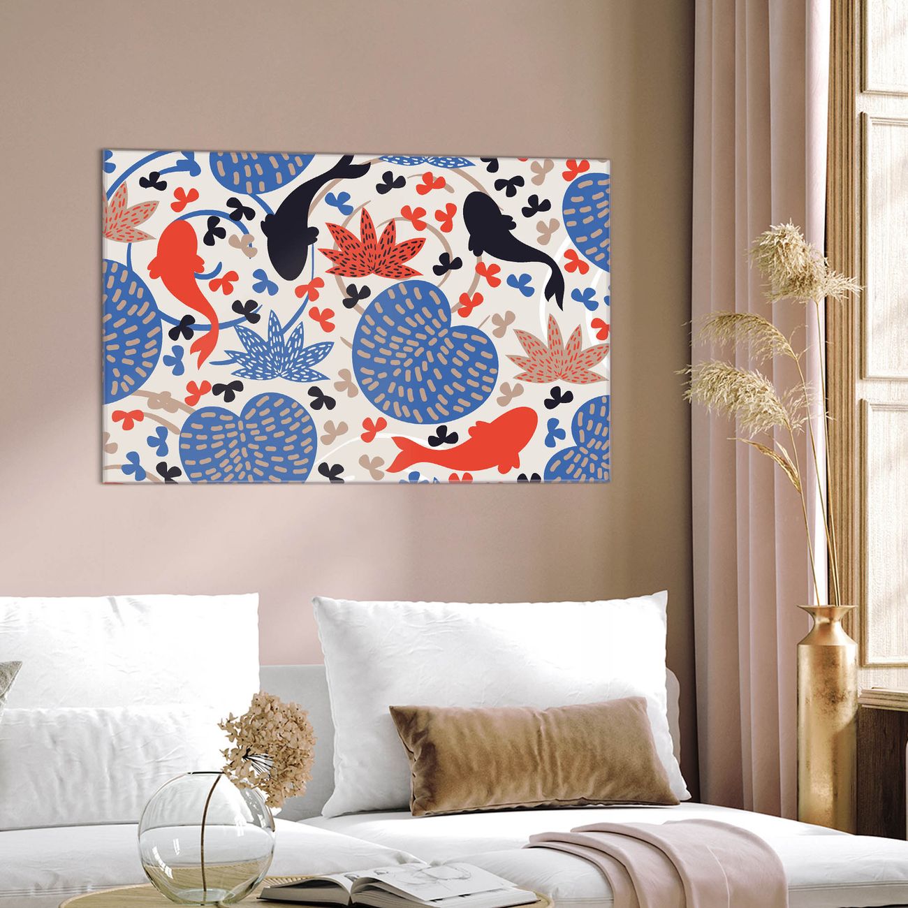 Glas Magnettafel im Querformat Koi Teich