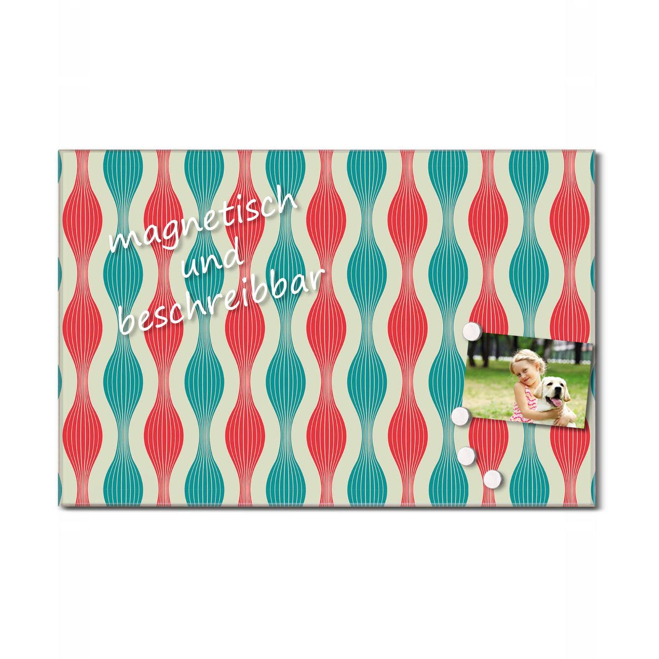 Glas Magnettafel im Querformat Kordel Blau Rot