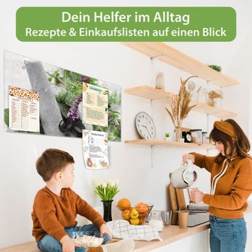 Die banjado Glas Magnettafel mit dem Motiv Motiv Kräuter verbindet Funktionalität mit Stil. Sie ersetzt das Zettelchaos durch klare Strukturen und bringt dabei eine warme, natürliche Atmosphäre in Ihr Zuhause. Ob im Büro, in der Küche oder im Eingangsbereich - dieses Design-Board zieht Blicke an und sorgt für Ordnung mit Charakter.