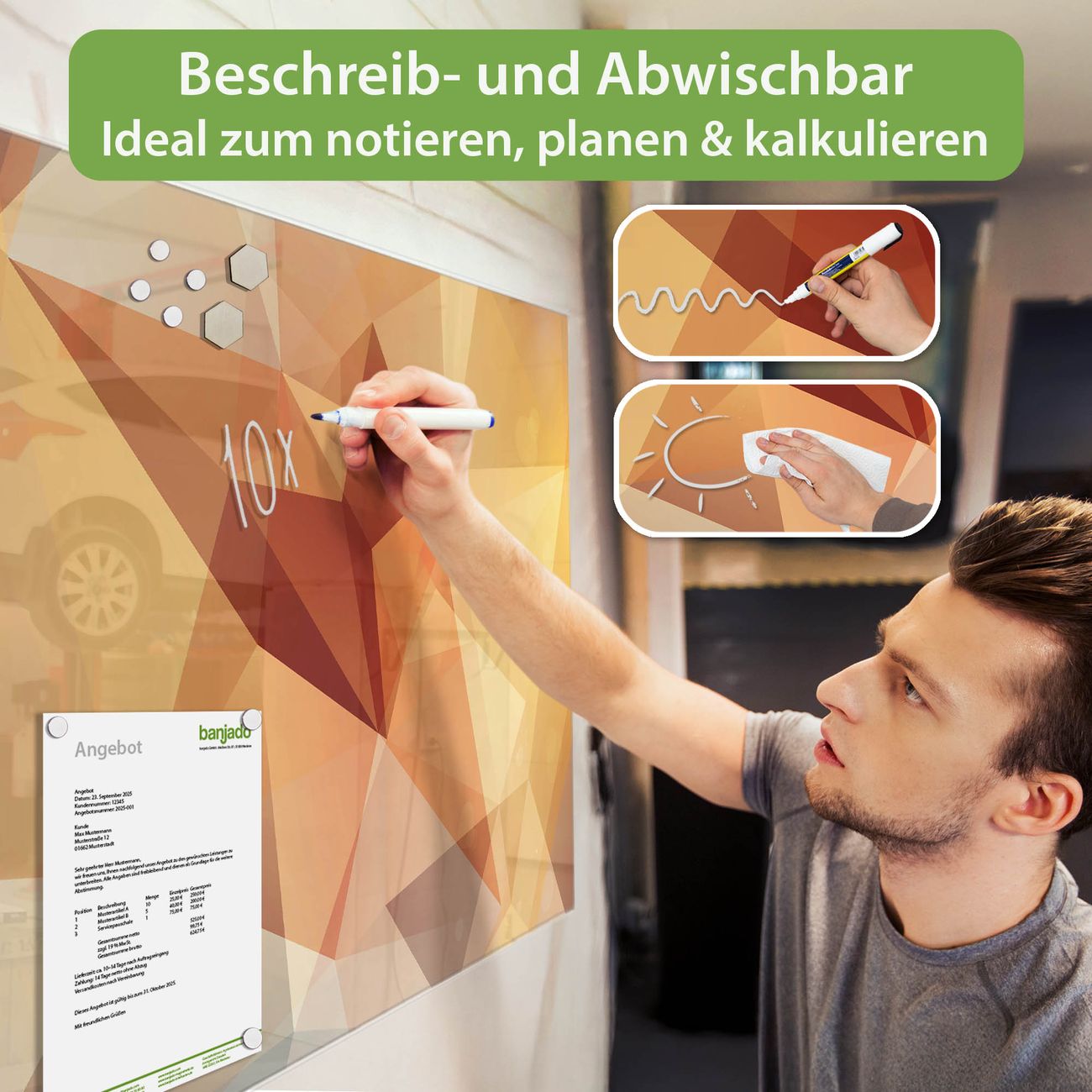 Die banjado Glas Magnettafel mit dem Motiv Motiv Kristall verbindet Funktionalität mit Stil. Sie ersetzt das Zettelchaos durch klare Strukturen und bringt dabei eine warme, natürliche Atmosphäre in Ihr Zuhause. Ob im Büro, in der Küche oder im Eingangsbereich - dieses Design-Board zieht Blicke an und sorgt für Ordnung mit Charakter.