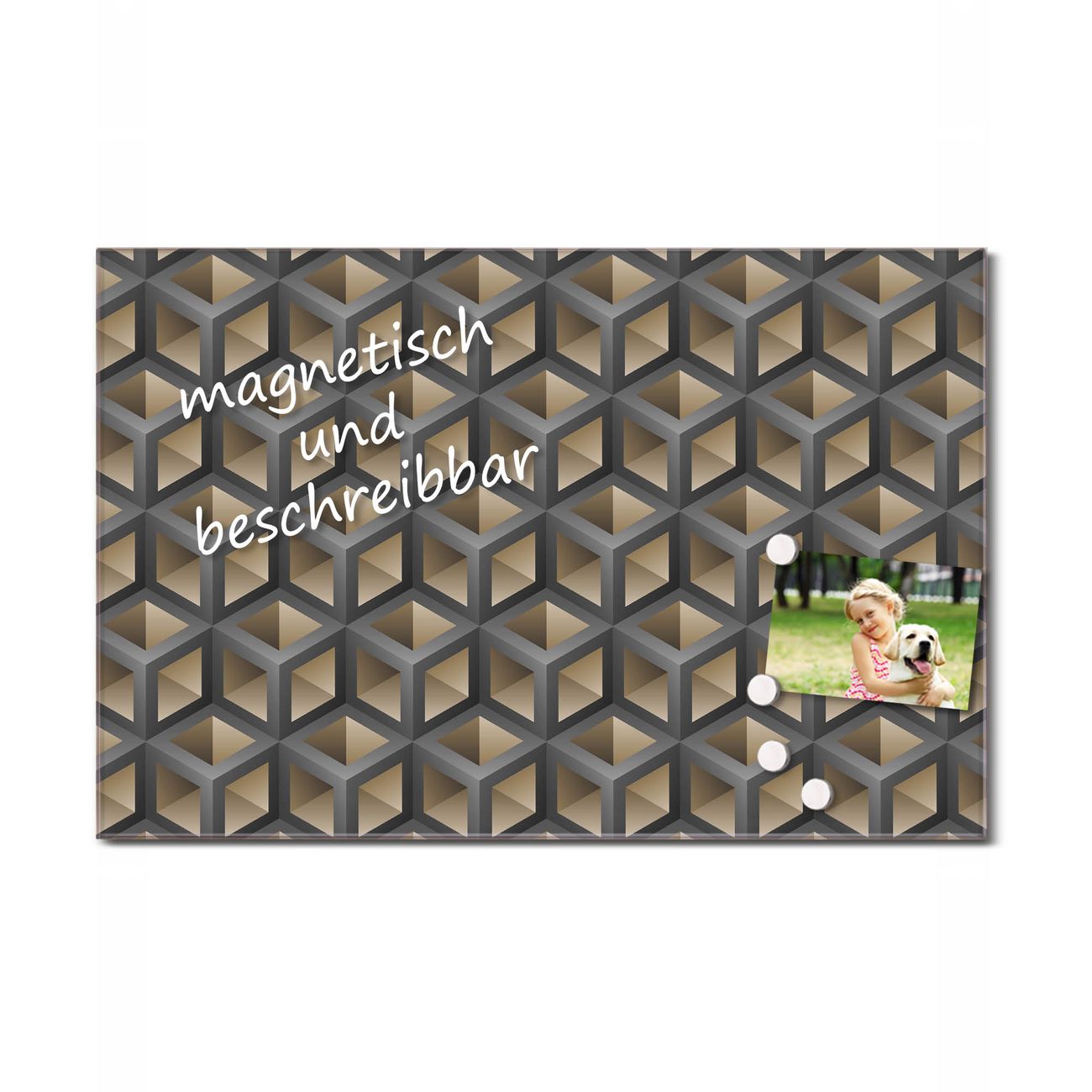 Glas Magnettafel im Querformat Kubengitter