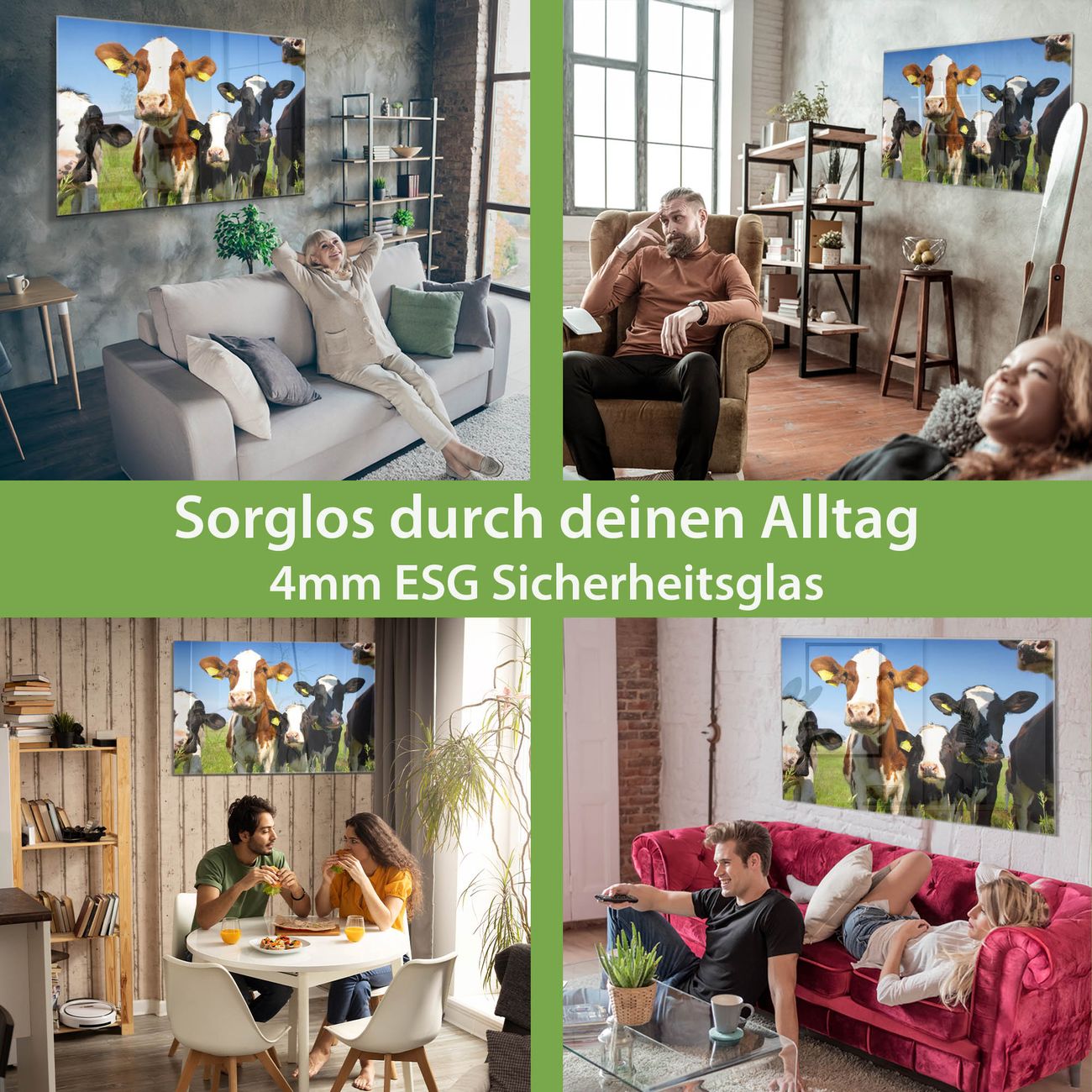 Glas Magnettafel im Querformat Motiv Kühe
