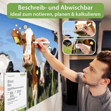 Die banjado Glas Magnettafel mit dem Motiv Motiv Kühe verbindet Funktionalität mit Stil. Sie ersetzt das Zettelchaos durch klare Strukturen und bringt dabei eine warme, natürliche Atmosphäre in Ihr Zuhause. Ob im Büro, in der Küche oder im Eingangsbereich - dieses Design-Board zieht Blicke an und sorgt für Ordnung mit Charakter.