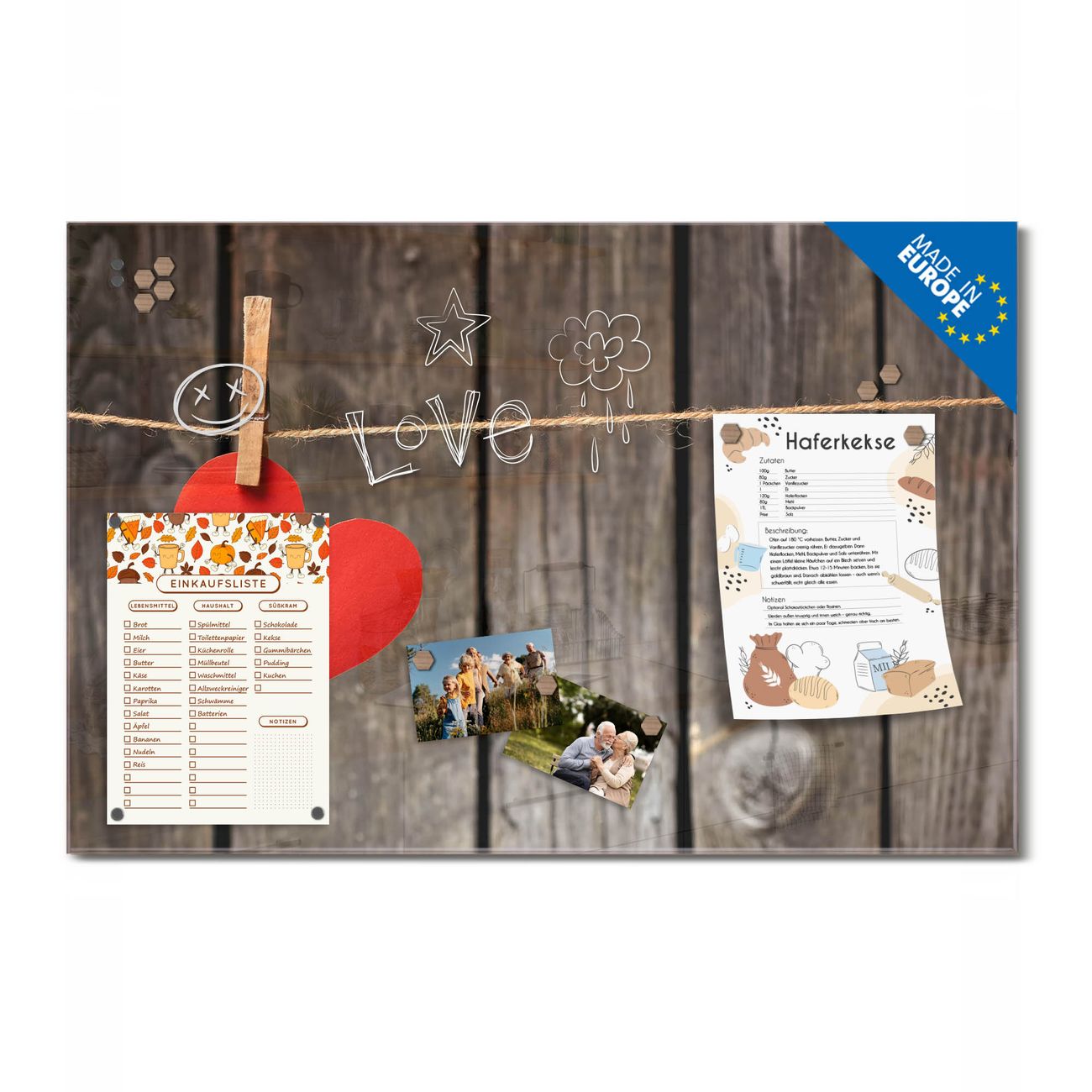Ein Stück Design, das Ihren Alltag organisiert. Schreiben, heften, inspirieren - alles an einem Ort. Qualität, die man spürt. Montage leicht gemacht. Handwerk mit Herz - veredelt in Sachsen. Einzigartiges Design mit Motiv Motiv Kurznachricht Beschreibbare Glasoberfläche, leicht zu reinigen Starke Magnetkraft durch Stahlrückwand Inklusive 4 Neodym-Magneten Flexible Montageoptionen Handveredelt in Sachsen - Qualität, die bleibt