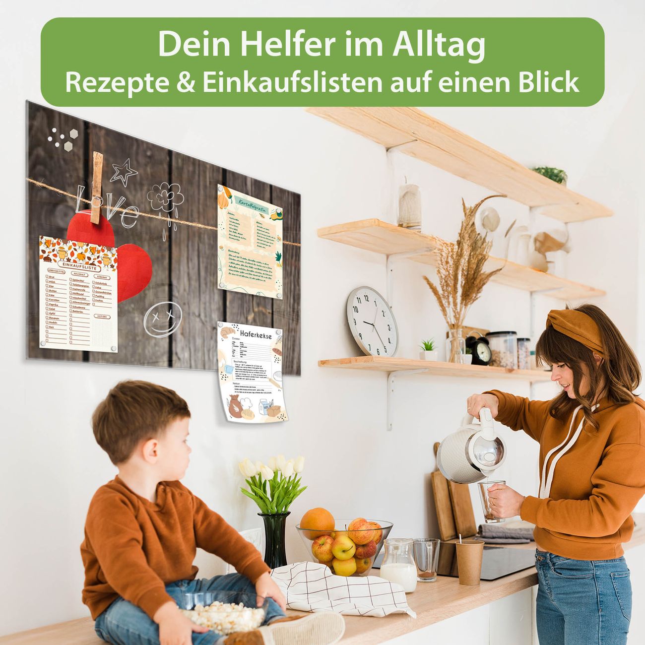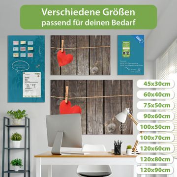 Auf der glatten Glasoberfläche lassen sich Termine, Rezepte oder Notizen ganz einfach mit Kreidestiften festhalten und rückstandslos entfernen. Starke Neodym-Magnete halten Ihre wichtigsten Erinnerungen sicher an Ort und Stelle. So entsteht Ihre ganz persönliche Ideenwand - jeden Tag neu.