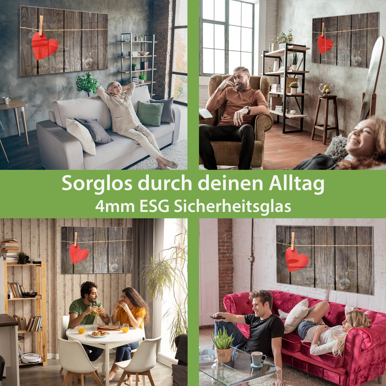 - Material: 4mm Sicherheitsglas mit Metallrückwand