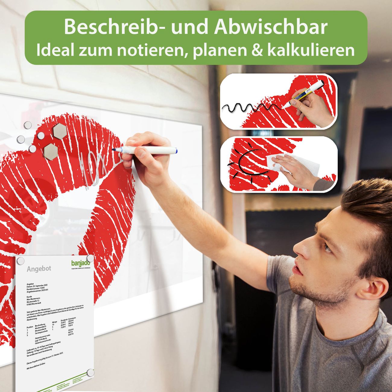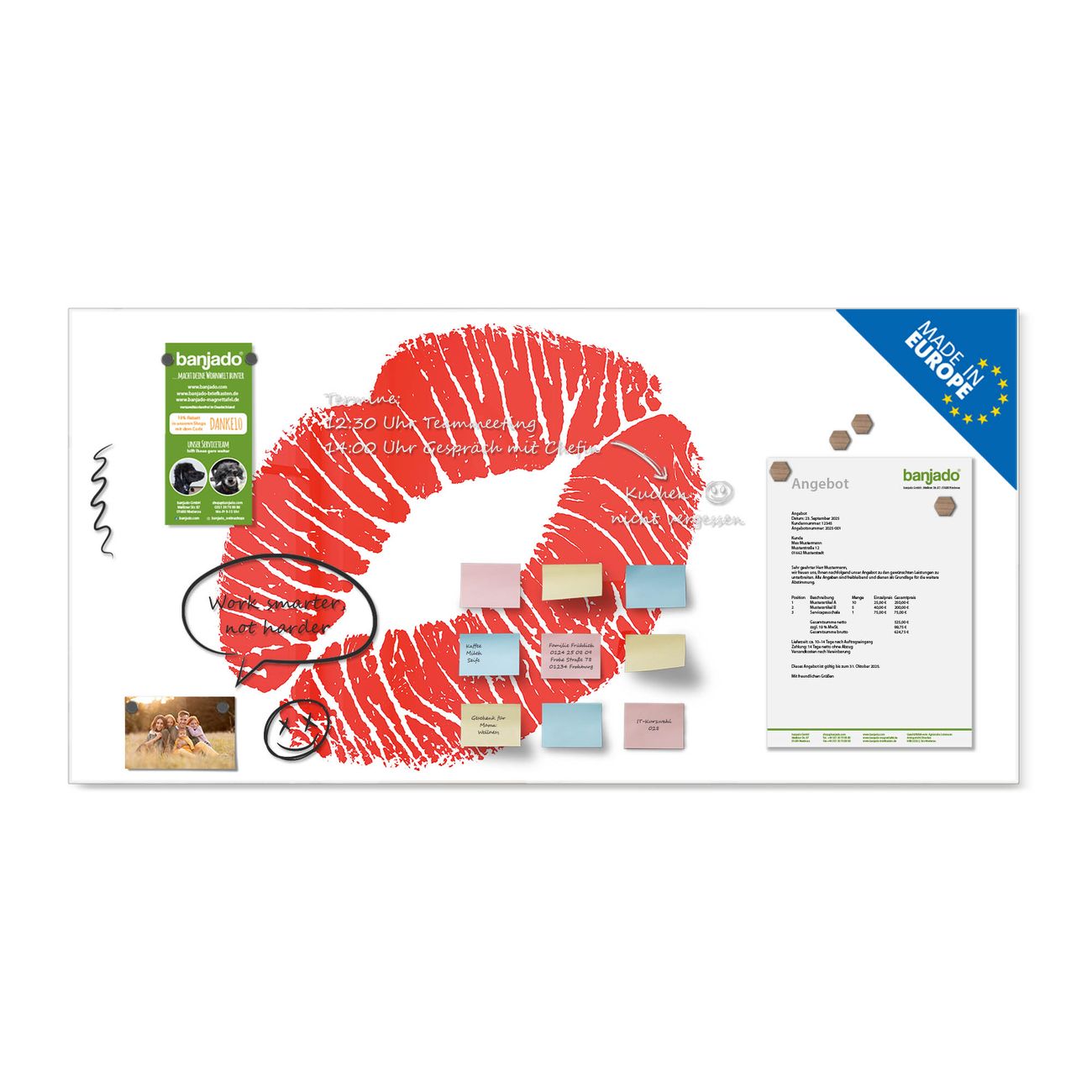 Die banjado Glas Magnettafel mit dem Motiv Motiv Kussmund verbindet Funktionalität mit Stil. Sie ersetzt das Zettelchaos durch klare Strukturen und bringt dabei eine warme, natürliche Atmosphäre in Ihr Zuhause. Ob im Büro, in der Küche oder im Eingangsbereich - dieses Design-Board zieht Blicke an und sorgt für Ordnung mit Charakter.