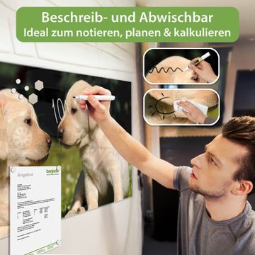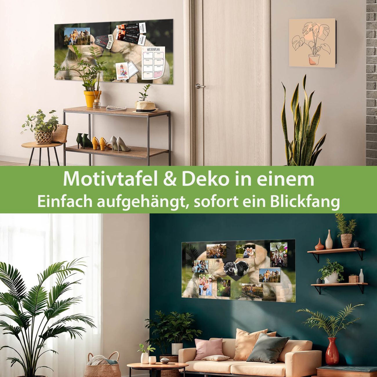 Die banjado Glas Magnettafel mit dem Motiv Motiv Labrador verbindet Funktionalität mit Stil. Sie ersetzt das Zettelchaos durch klare Strukturen und bringt dabei eine warme, natürliche Atmosphäre in Ihr Zuhause. Ob im Büro, in der Küche oder im Eingangsbereich - dieses Design-Board zieht Blicke an und sorgt für Ordnung mit Charakter.