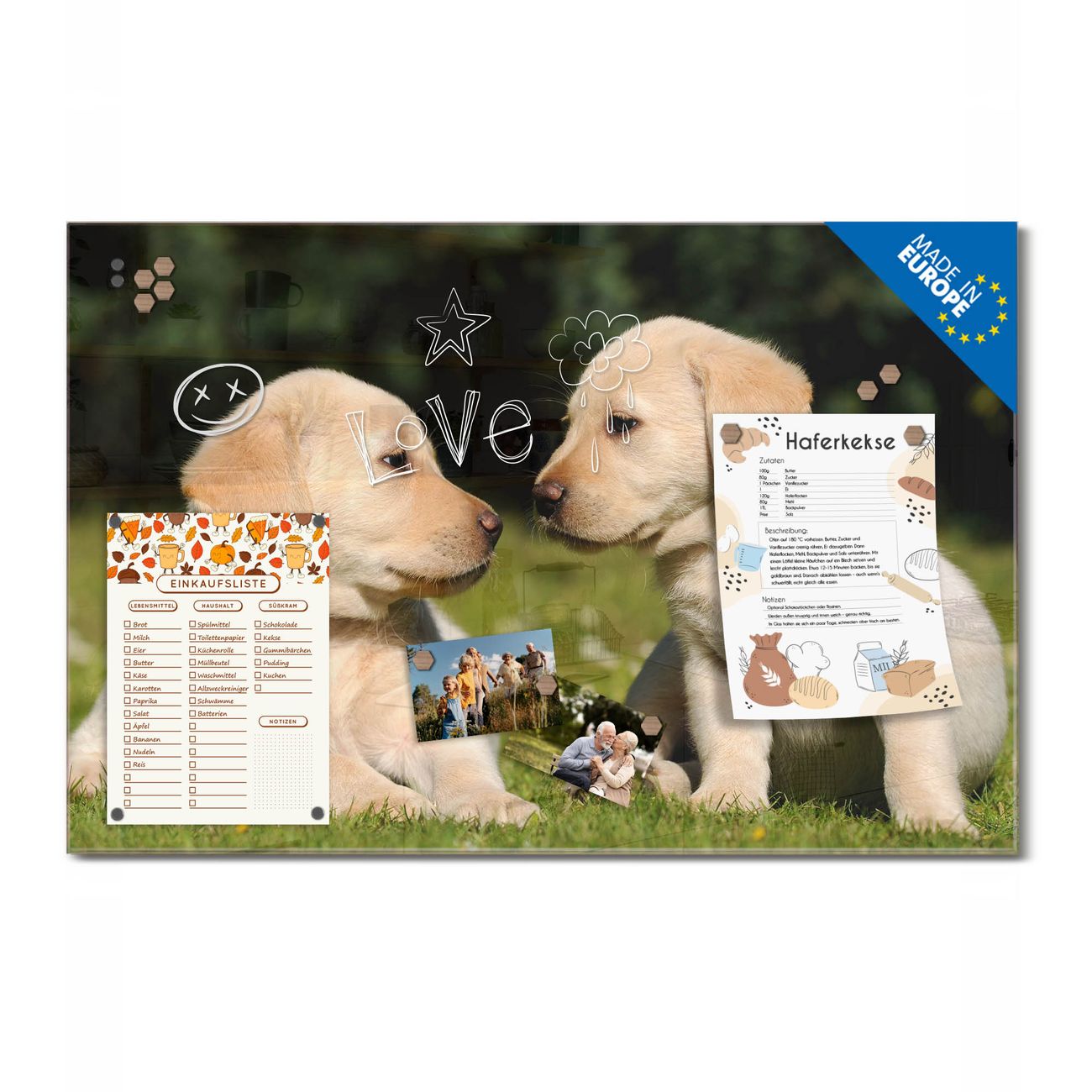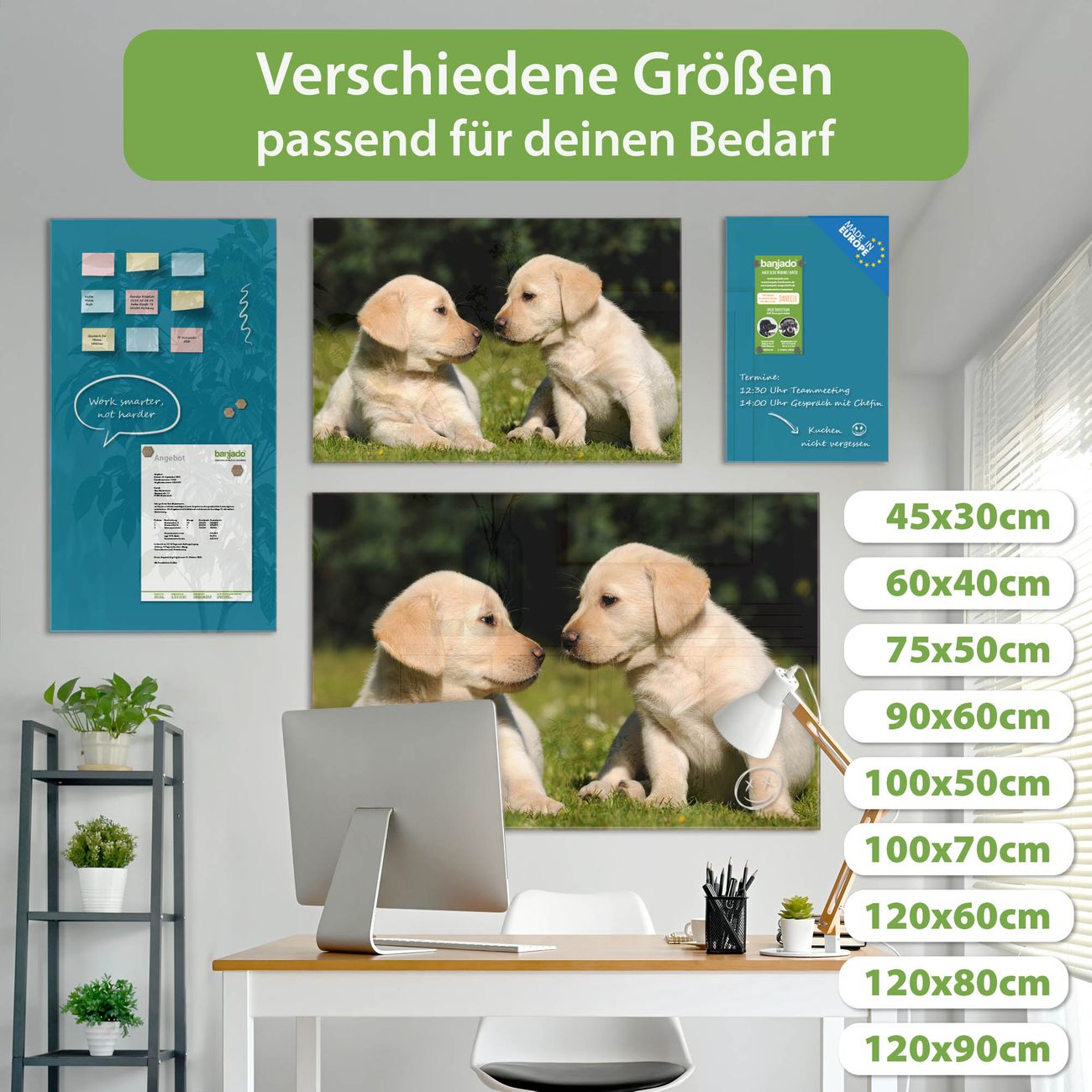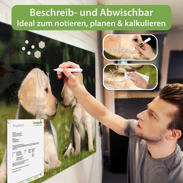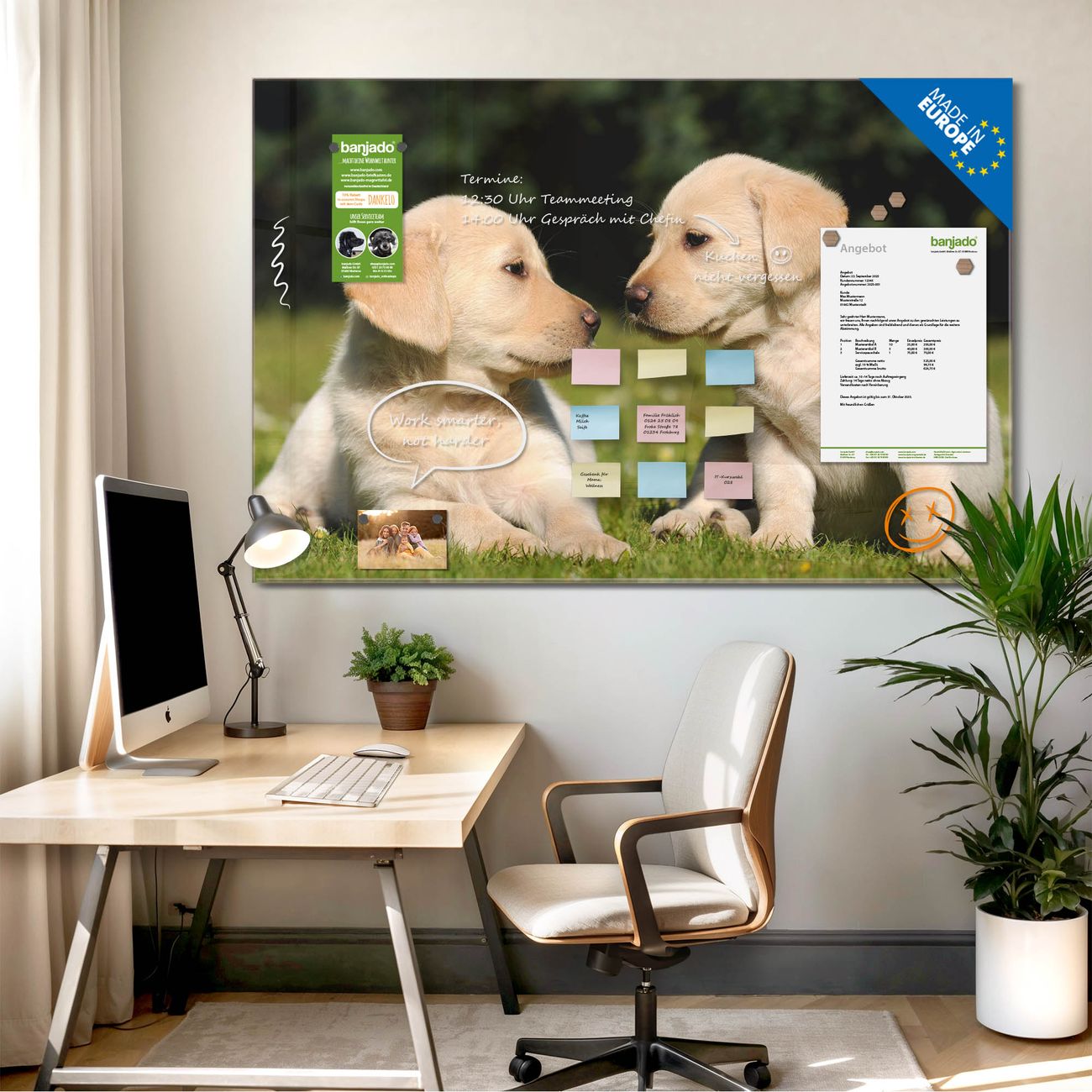 Die banjado Glas Magnettafel mit dem Motiv Motiv Labrador verbindet Funktionalität mit Stil. Sie ersetzt das Zettelchaos durch klare Strukturen und bringt dabei eine warme, natürliche Atmosphäre in Ihr Zuhause. Ob im Büro, in der Küche oder im Eingangsbereich - dieses Design-Board zieht Blicke an und sorgt für Ordnung mit Charakter.