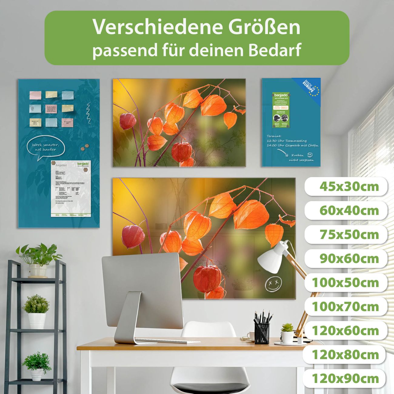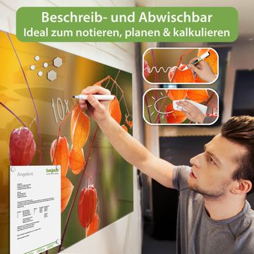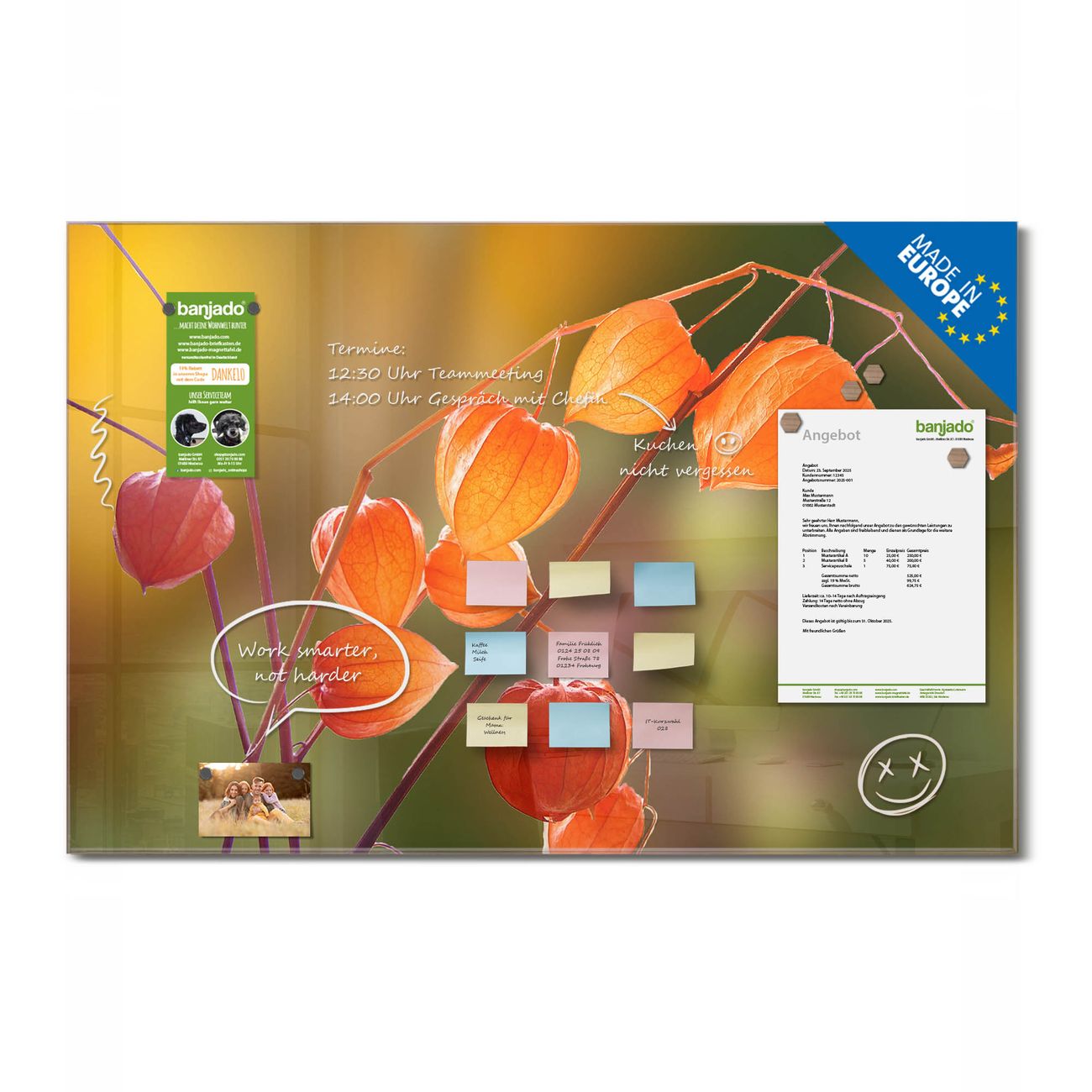 Die banjado Glas Magnettafel mit dem Motiv Motiv Lampionblume verbindet Funktionalität mit Stil. Sie ersetzt das Zettelchaos durch klare Strukturen und bringt dabei eine warme, natürliche Atmosphäre in Ihr Zuhause. Ob im Büro, in der Küche oder im Eingangsbereich - dieses Design-Board zieht Blicke an und sorgt für Ordnung mit Charakter.