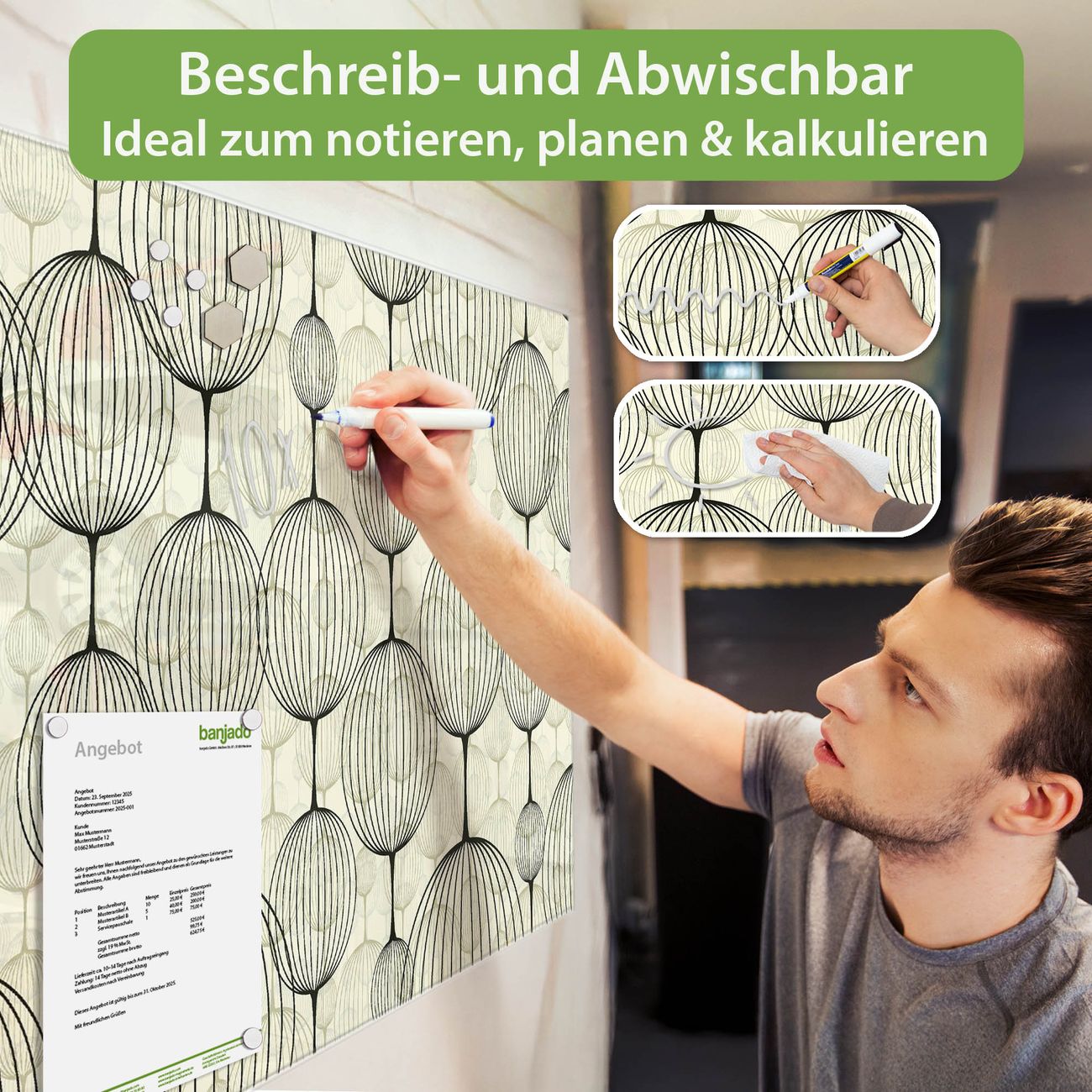 Jede Glas Magnettafel wird in unserer Werkstatt von Hand gefertigt und sorgfältig geprüft. So erhalten Sie ein echtes Qualitätsprodukt, das Funktion und Ästhetik perfekt vereint.?? Warum banjado?
