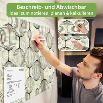 Auf der glatten Glasoberfläche lassen sich Termine, Rezepte oder Notizen ganz einfach mit Kreidestiften festhalten und rückstandslos entfernen. Starke Neodym-Magnete halten Ihre wichtigsten Erinnerungen sicher an Ort und Stelle. So entsteht Ihre ganz persönliche Ideenwand - jeden Tag neu.