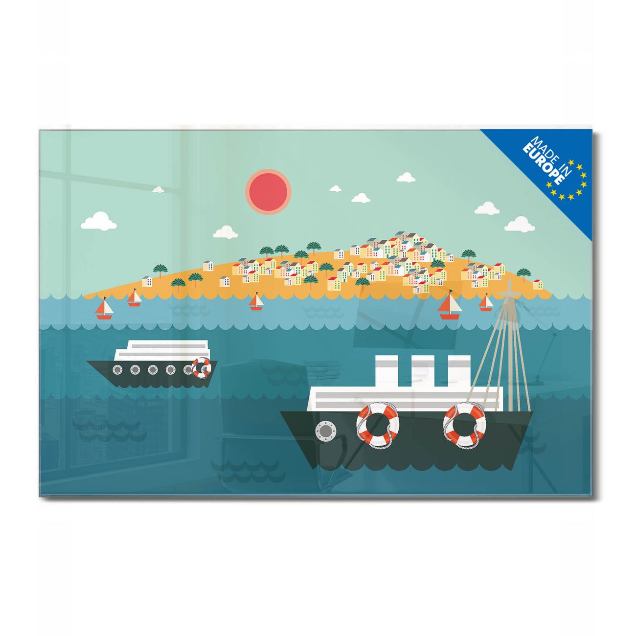 Glas Magnettafel im Querformat Motiv Land in Sicht