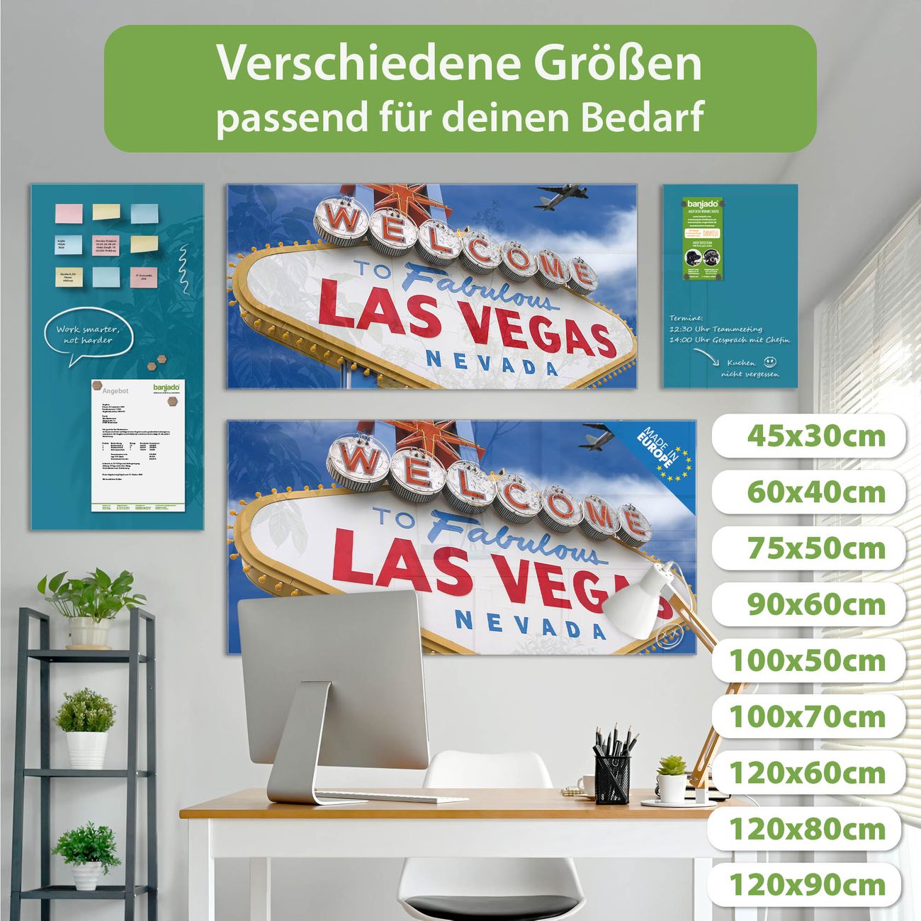 Ein Stück Design, das Ihren Alltag organisiert. Schreiben, heften, inspirieren - alles an einem Ort. Qualität, die man spürt. Montage leicht gemacht. Handwerk mit Herz - veredelt in Sachsen. Einzigartiges Design mit Motiv Motiv Las Vegas Beschreibbare Glasoberfläche, leicht zu reinigen Starke Magnetkraft durch Stahlrückwand Inklusive 4 Neodym-Magneten Flexible Montageoptionen Handveredelt in Sachsen - Qualität, die bleibt