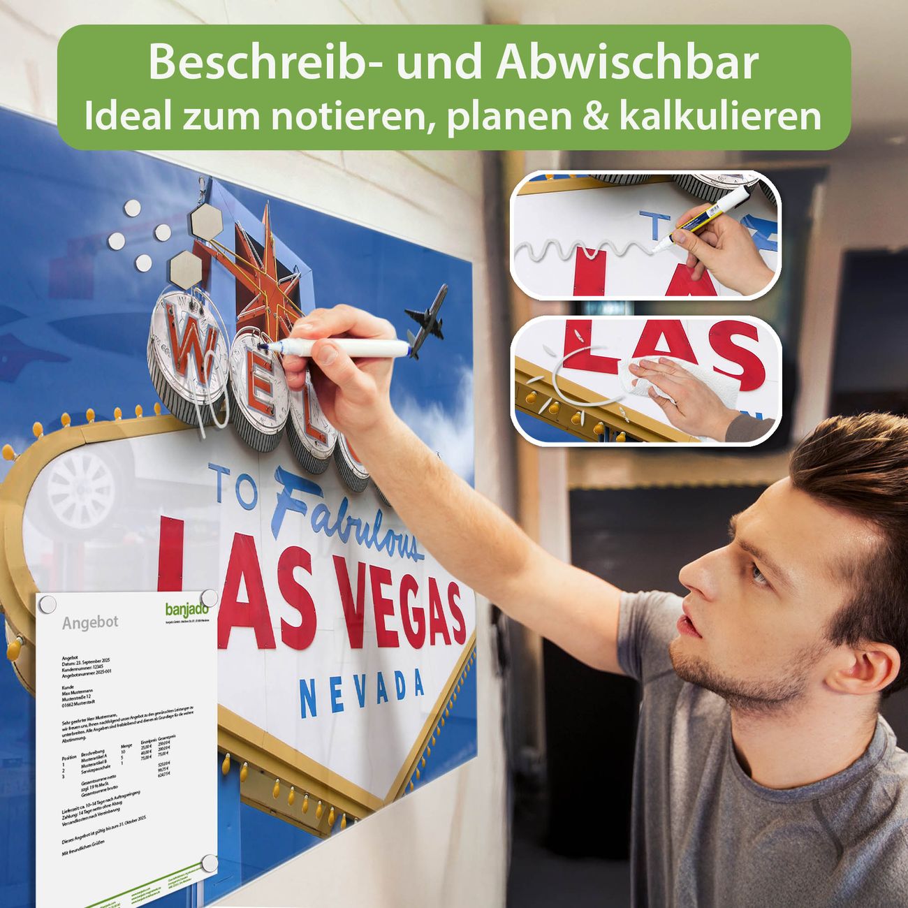 Die banjado Glas Magnettafel mit dem Motiv Motiv Las Vegas verbindet Funktionalität mit Stil. Sie ersetzt das Zettelchaos durch klare Strukturen und bringt dabei eine warme, natürliche Atmosphäre in Ihr Zuhause. Ob im Büro, in der Küche oder im Eingangsbereich - dieses Design-Board zieht Blicke an und sorgt für Ordnung mit Charakter.