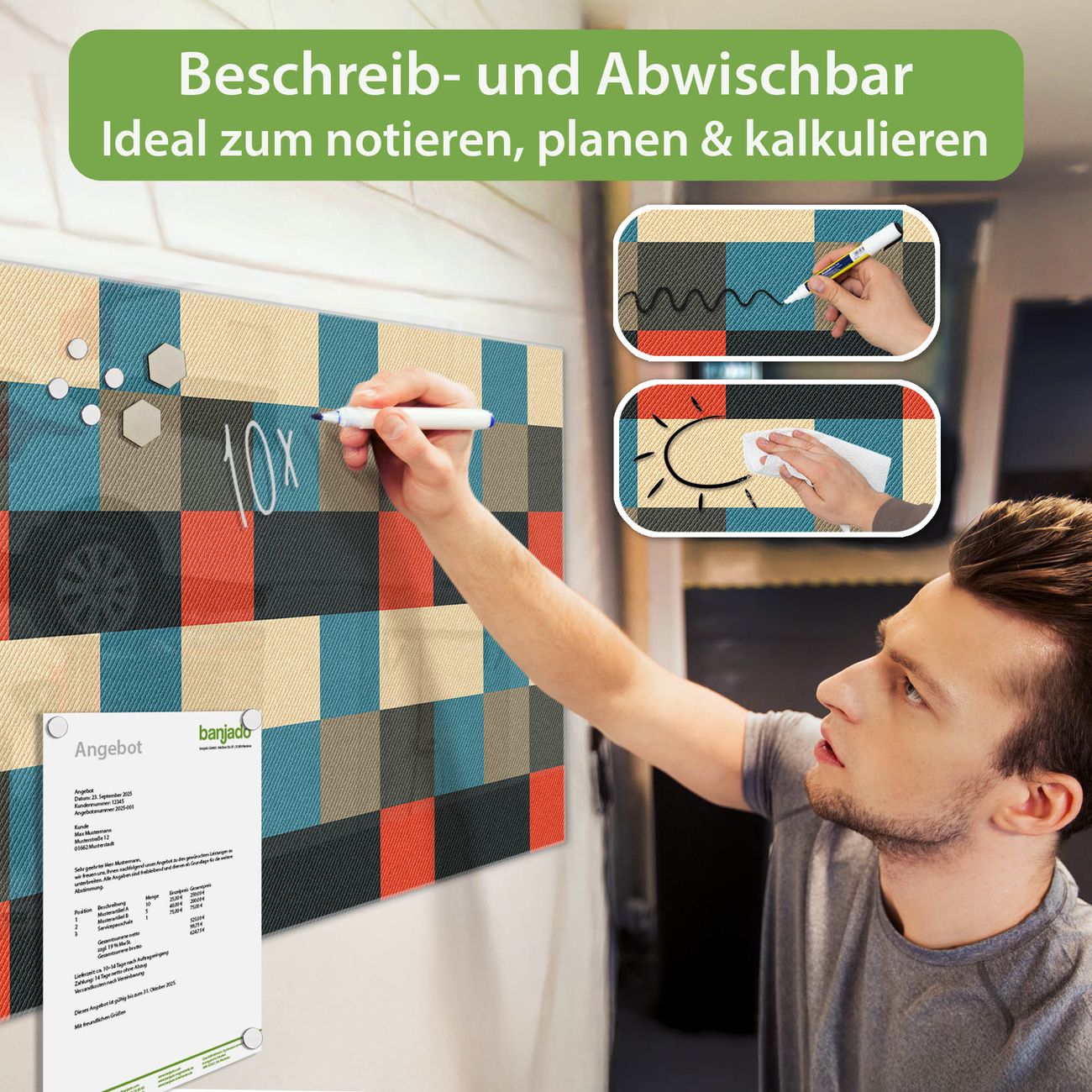Jede Glas Magnettafel wird in unserer Werkstatt von Hand gefertigt und sorgfältig geprüft. So erhalten Sie ein echtes Qualitätsprodukt, das Funktion und Ästhetik perfekt vereint.?? Warum banjado?