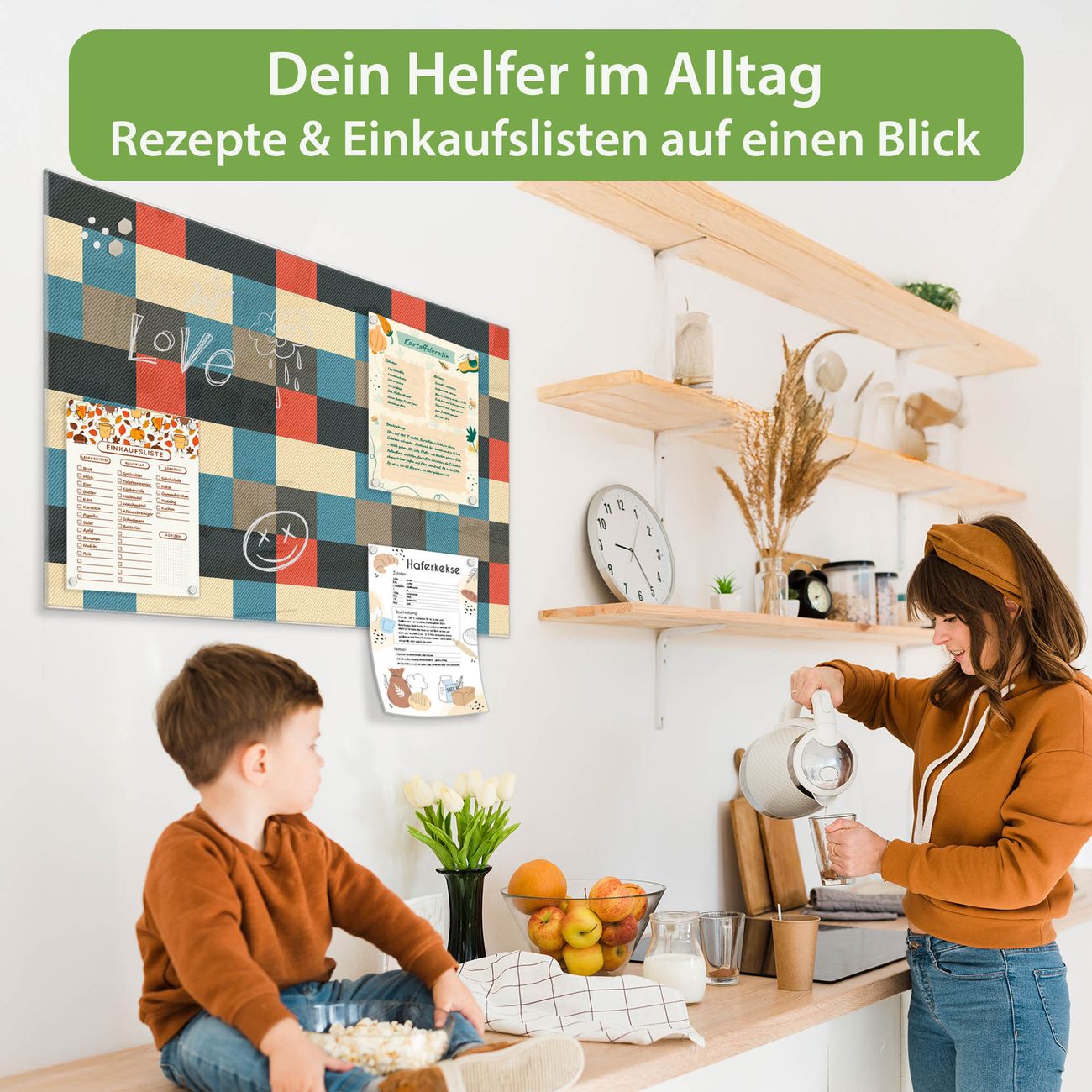 Auf der glatten Glasoberfläche lassen sich Termine, Rezepte oder Notizen ganz einfach mit Kreidestiften festhalten und rückstandslos entfernen. Starke Neodym-Magnete halten Ihre wichtigsten Erinnerungen sicher an Ort und Stelle. So entsteht Ihre ganz persönliche Ideenwand - jeden Tag neu.