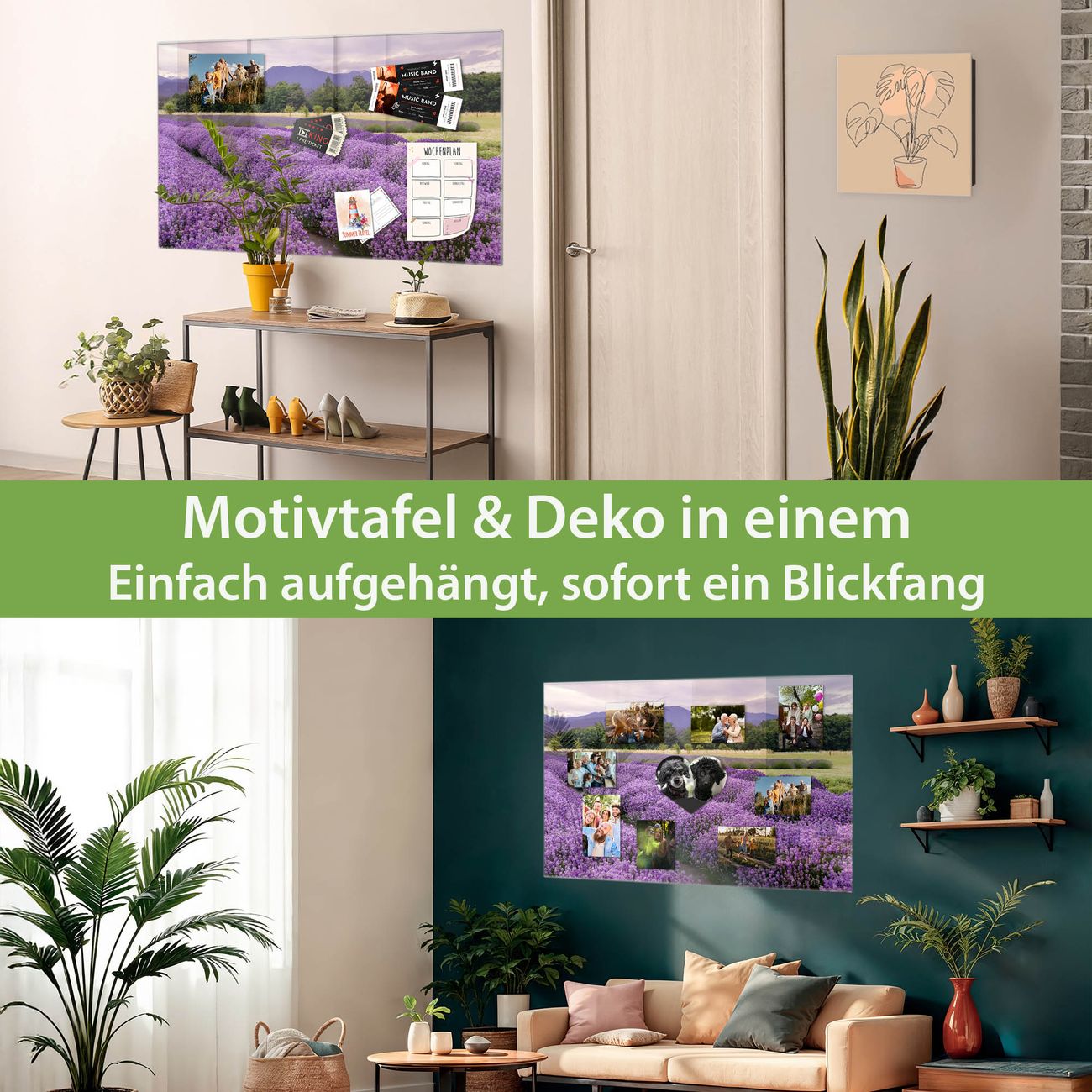 Die banjado Glas Magnettafel mit dem Motiv Motiv Lavendel 1 verbindet Funktionalität mit Stil. Sie ersetzt das Zettelchaos durch klare Strukturen und bringt dabei eine warme, natürliche Atmosphäre in Ihr Zuhause. Ob im Büro, in der Küche oder im Eingangsbereich - dieses Design-Board zieht Blicke an und sorgt für Ordnung mit Charakter.