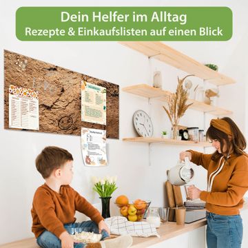 Ein Stück Design, das Ihren Alltag organisiert. Schreiben, heften, inspirieren - alles an einem Ort. Qualität, die man spürt. Montage leicht gemacht. Handwerk mit Herz - veredelt in Sachsen. Einzigartiges Design mit Motiv Motiv Lehmboden Beschreibbare Glasoberfläche, leicht zu reinigen Starke Magnetkraft durch Stahlrückwand Inklusive 4 Neodym-Magneten Flexible Montageoptionen Handveredelt in Sachsen - Qualität, die bleibt