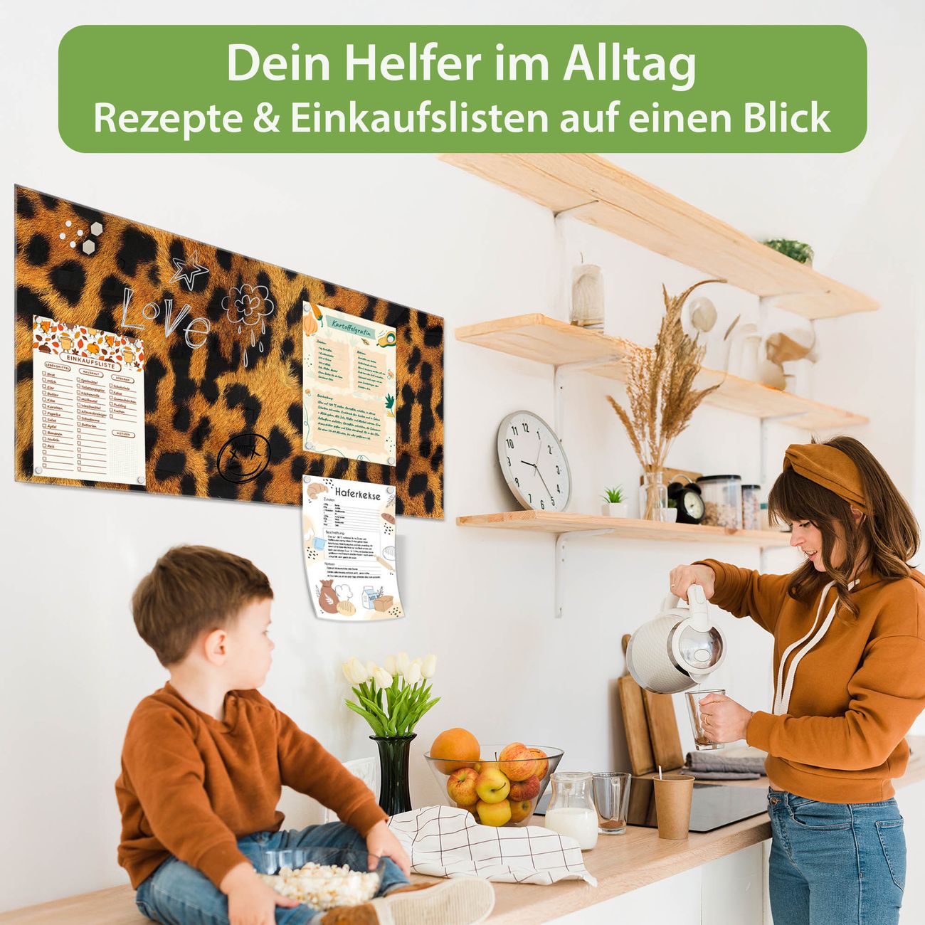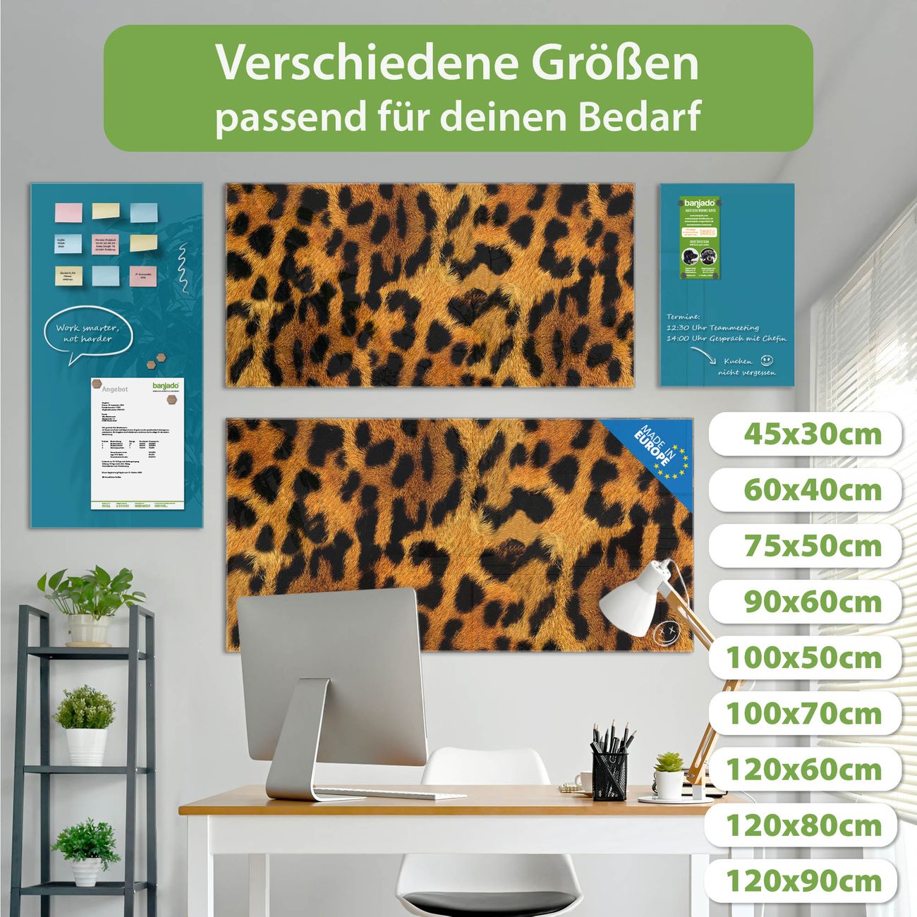 Ein Stück Design, das Ihren Alltag organisiert. Schreiben, heften, inspirieren - alles an einem Ort. Qualität, die man spürt. Montage leicht gemacht. Handwerk mit Herz - veredelt in Sachsen. Einzigartiges Design mit Motiv Motiv Leopard Beschreibbare Glasoberfläche, leicht zu reinigen Starke Magnetkraft durch Stahlrückwand Inklusive 4 Neodym-Magneten Flexible Montageoptionen Handveredelt in Sachsen - Qualität, die bleibt