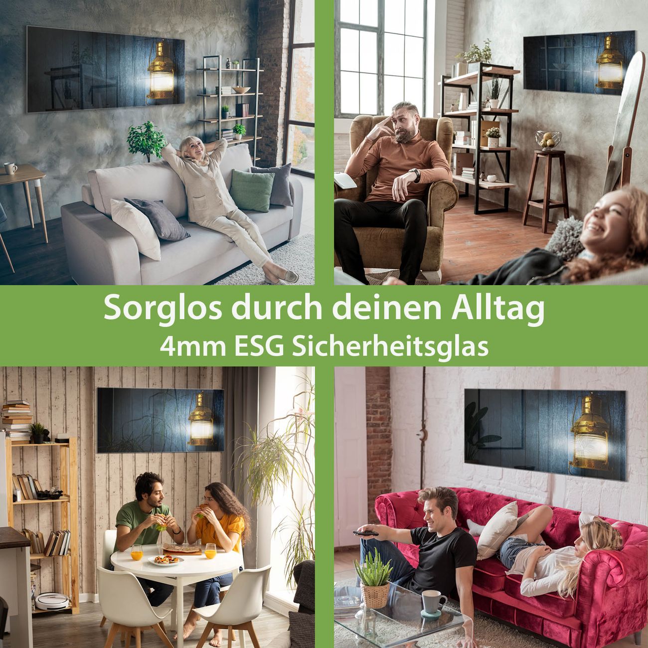 - Material: 4mm Sicherheitsglas mit Metallrückwand