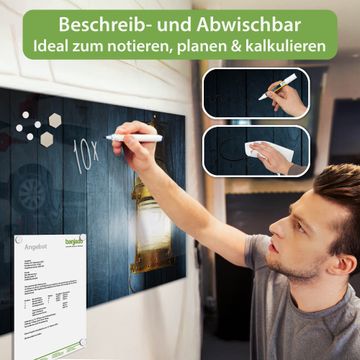 Jede Glas Magnettafel wird in unserer Werkstatt von Hand gefertigt und sorgfältig geprüft. So erhalten Sie ein echtes Qualitätsprodukt, das Funktion und Ästhetik perfekt vereint.?? Warum banjado?