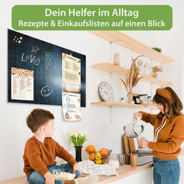 Auf der glatten Glasoberfläche lassen sich Termine, Rezepte oder Notizen ganz einfach mit Kreidestiften festhalten und rückstandslos entfernen. Starke Neodym-Magnete halten Ihre wichtigsten Erinnerungen sicher an Ort und Stelle. So entsteht Ihre ganz persönliche Ideenwand - jeden Tag neu.