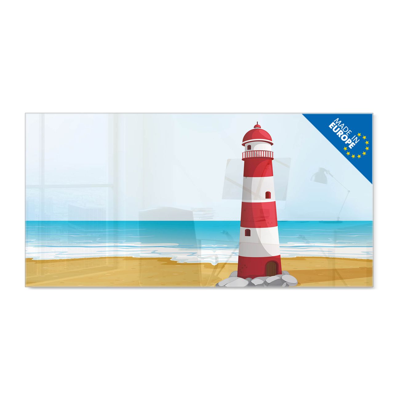 Glas Magnettafel im Querformat Motiv Leuchtturm Illustration