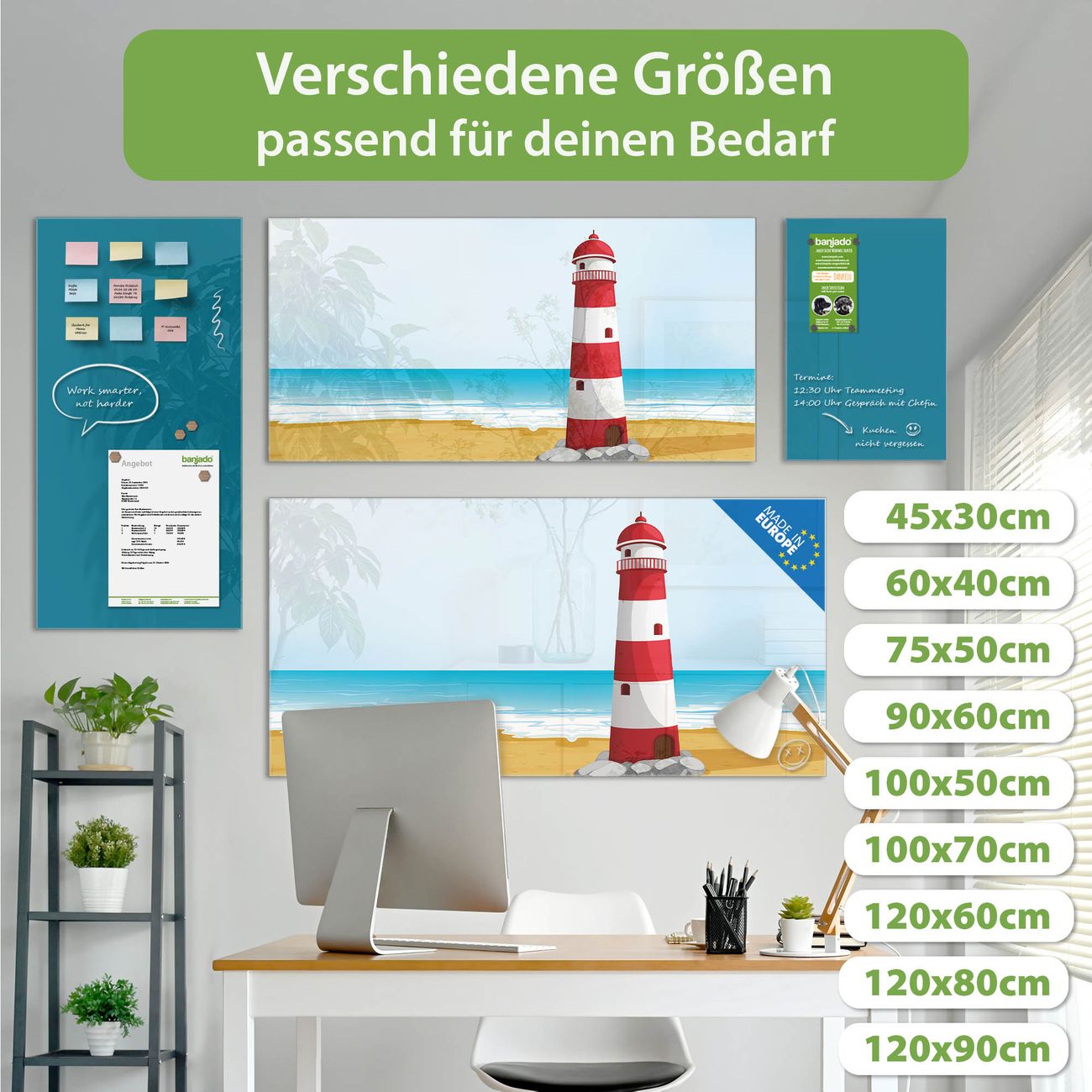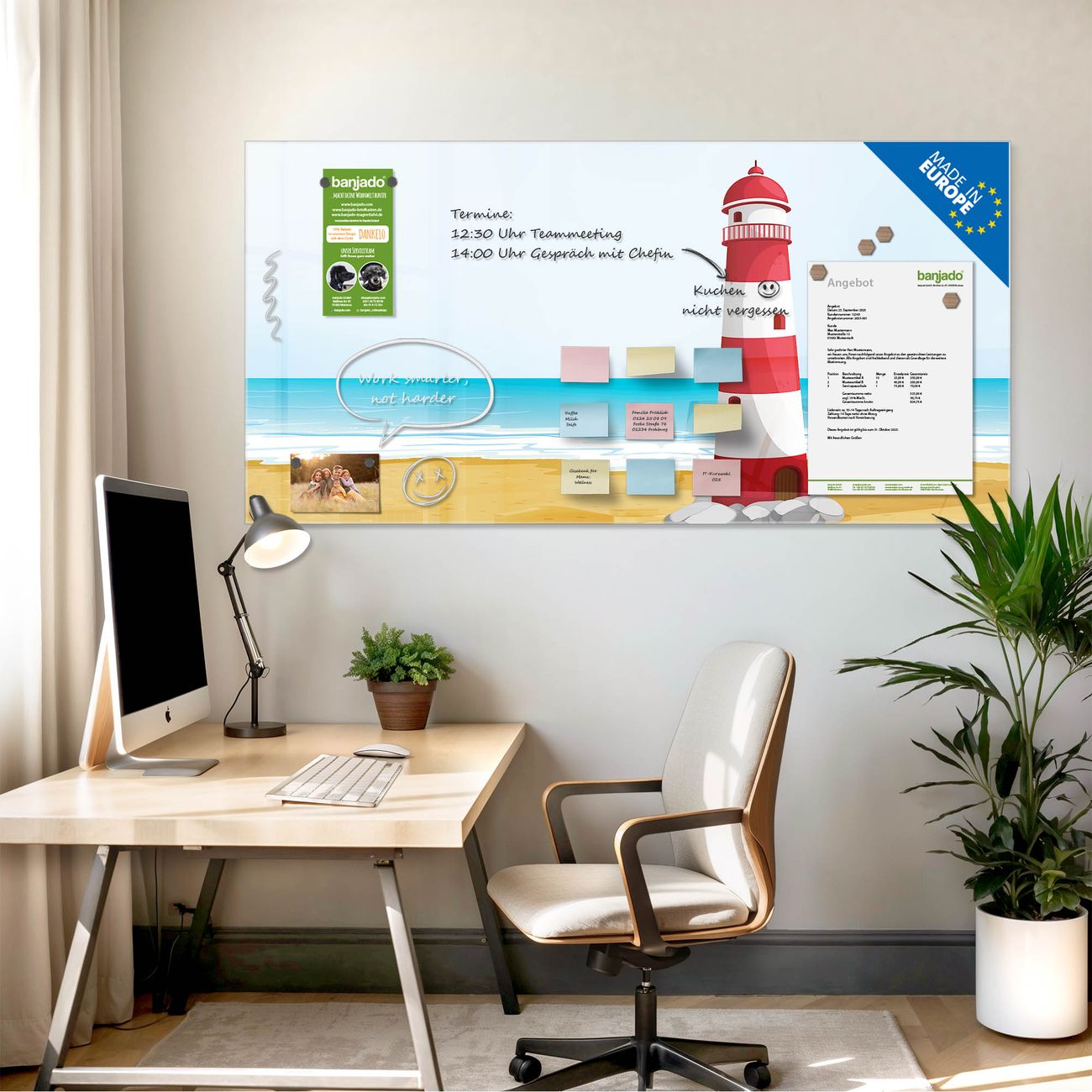 Jede Glas Magnettafel wird in unserer Werkstatt von Hand gefertigt und sorgfältig geprüft. So erhalten Sie ein echtes Qualitätsprodukt, das Funktion und Ästhetik perfekt vereint.?? Warum banjado?