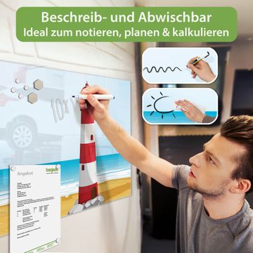 Die banjado Glas Magnettafel mit dem Motiv Motiv Leuchtturm Illustration verbindet Funktionalität mit Stil. Sie ersetzt das Zettelchaos durch klare Strukturen und bringt dabei eine warme, natürliche Atmosphäre in Ihr Zuhause. Ob im Büro, in der Küche oder im Eingangsbereich - dieses Design-Board zieht Blicke an und sorgt für Ordnung mit Charakter.