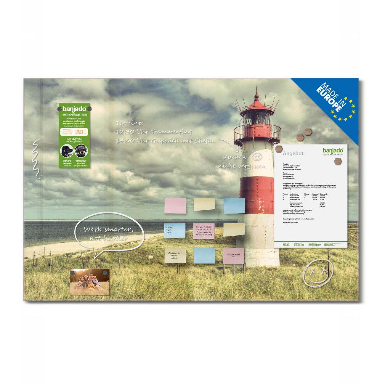 Die banjado Glas Magnettafel mit dem Motiv Motiv Leuchtturm Sylt verbindet Funktionalität mit Stil. Sie ersetzt das Zettelchaos durch klare Strukturen und bringt dabei eine warme, natürliche Atmosphäre in Ihr Zuhause. Ob im Büro, in der Küche oder im Eingangsbereich - dieses Design-Board zieht Blicke an und sorgt für Ordnung mit Charakter.